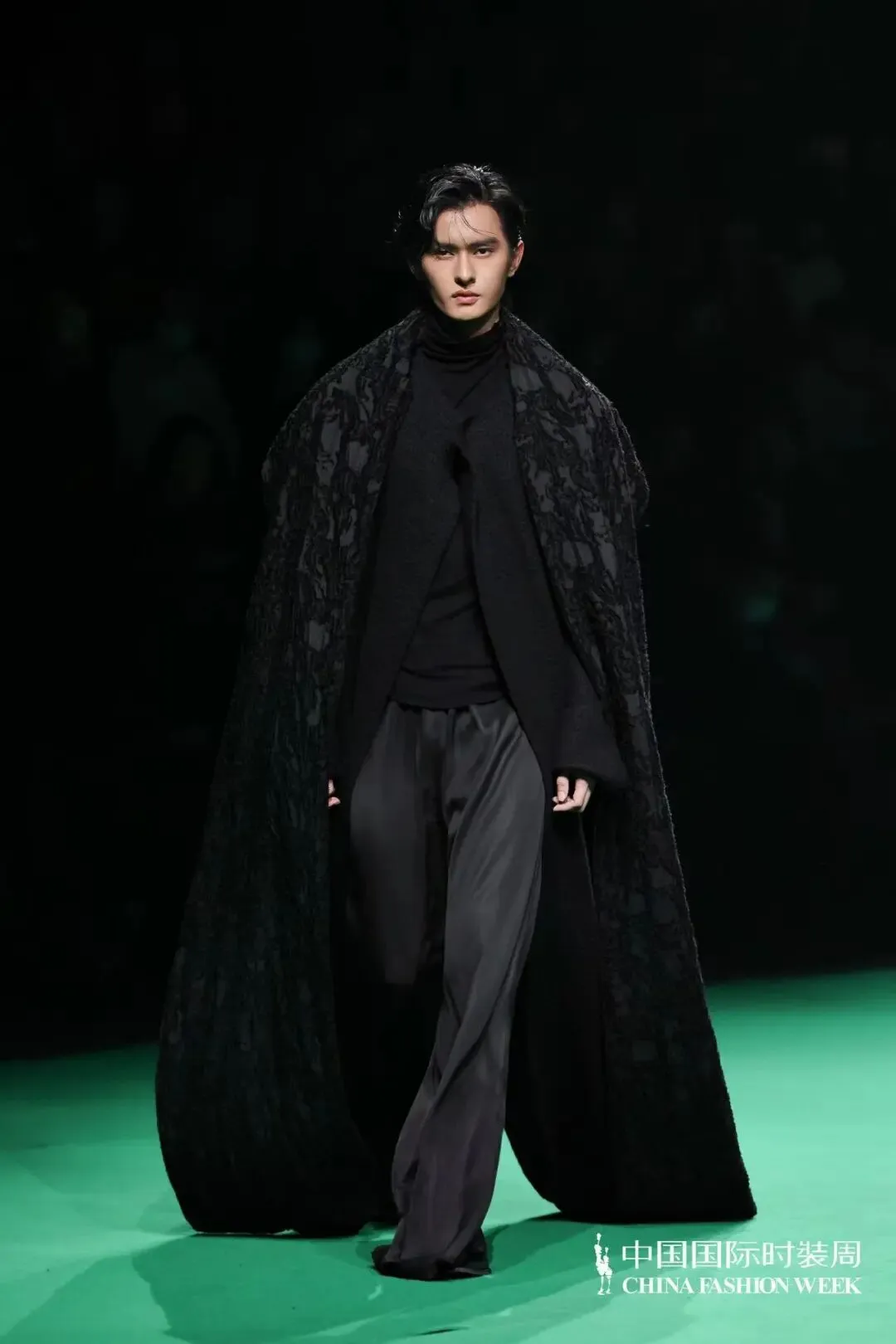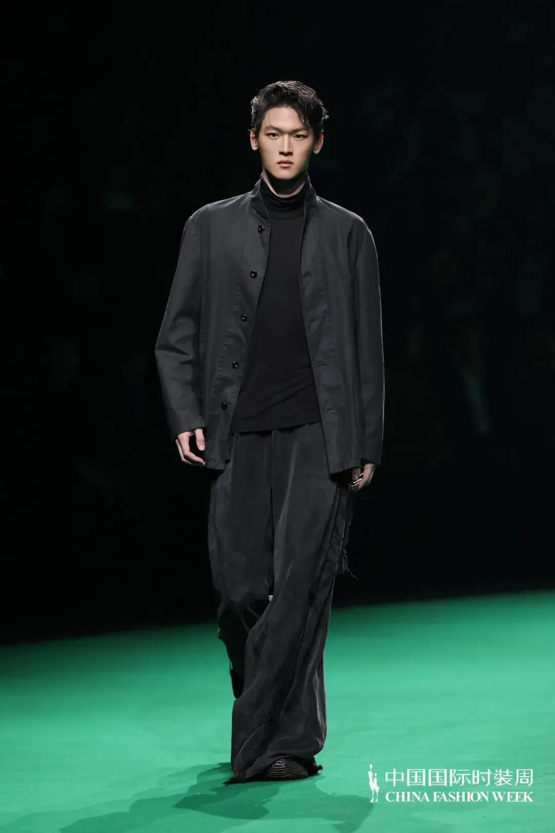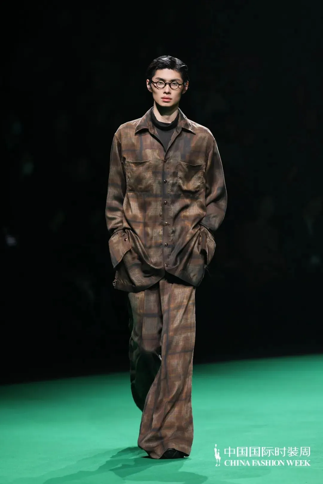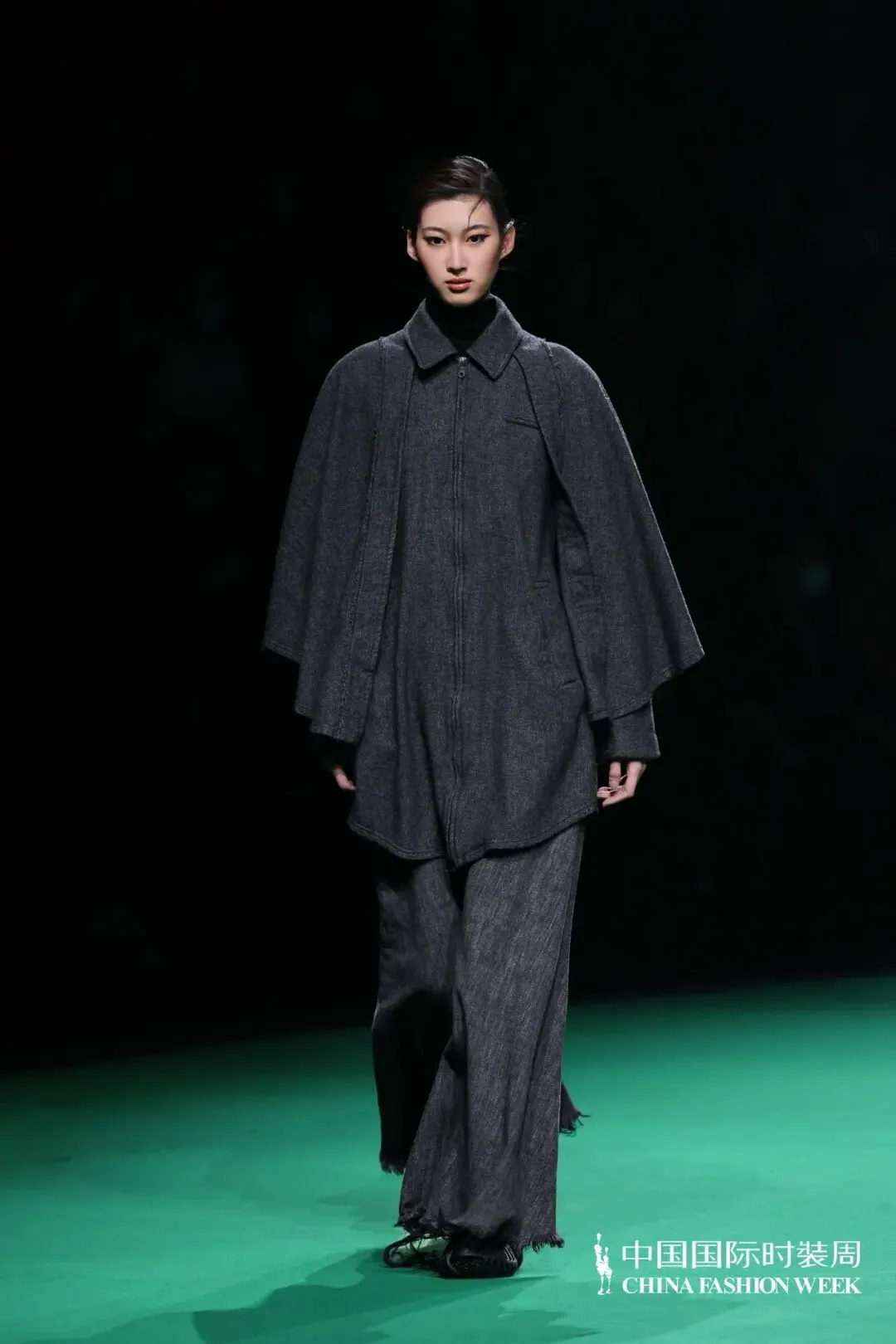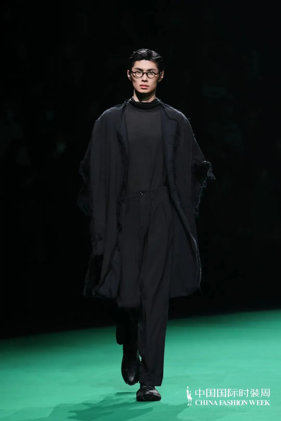 本次作品发布会主创设计师为北京服装学院副院长、教授、博士生导师邹游,以“奇峰岁月Peak/Epoch”为主题,探讨服装作为时间媒介所镌刻的美学线条。大秀将20世纪西方早期设计师与中国文人的形象并置,使不同空间的知识分子着装风格在形式结构与审美意韵上形成映照与对话。设计团队打破服装固有款式结构,强化内外、上下层次的穿插关系,并融合绗缝、毛边等传统工艺,将20世纪初的现代性转化为可感知的时代气质与穿着情绪。