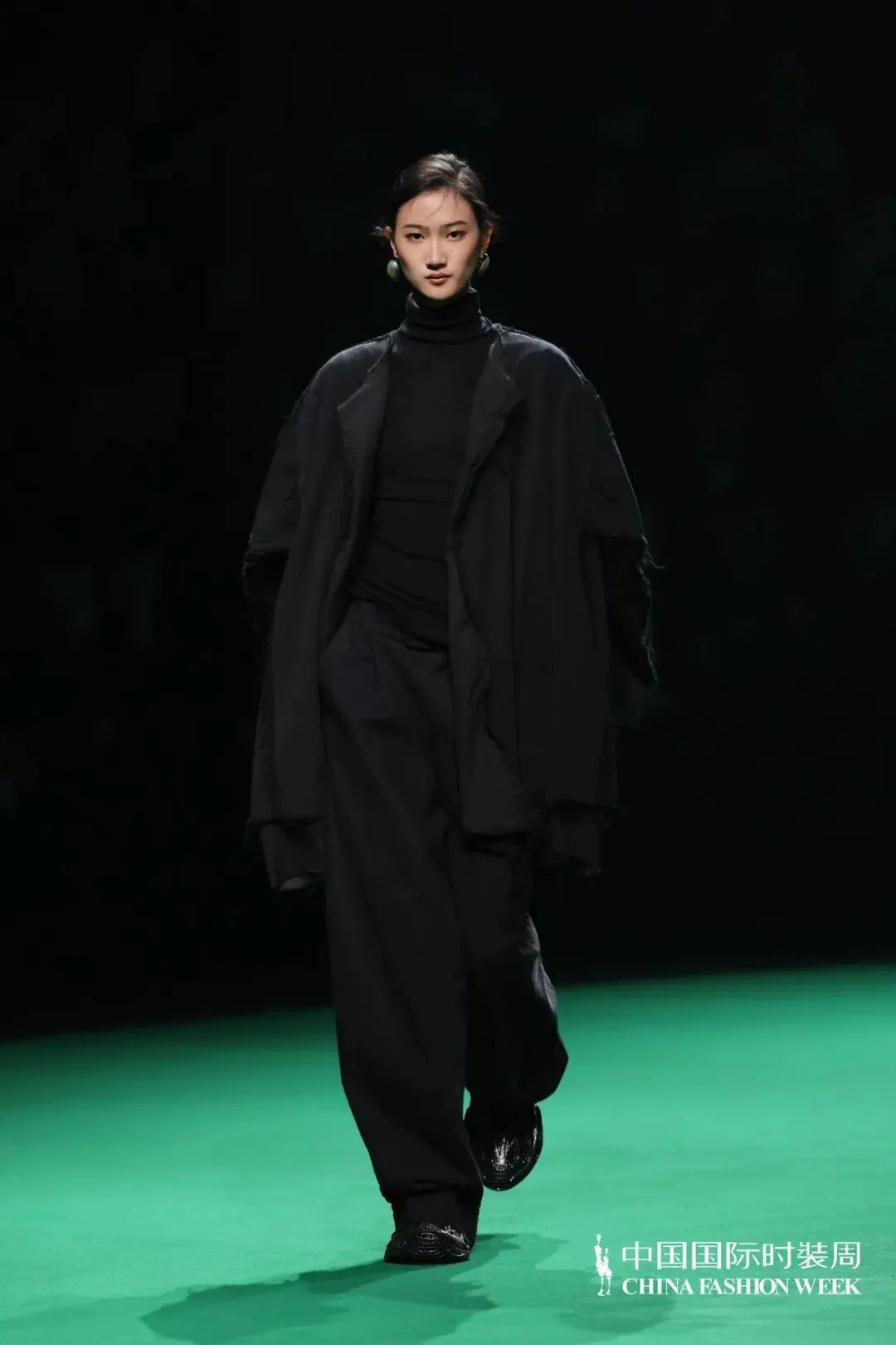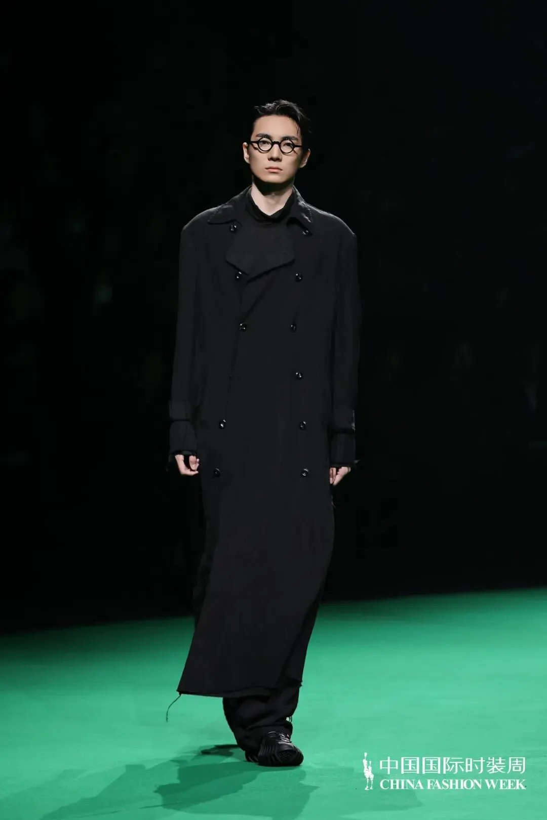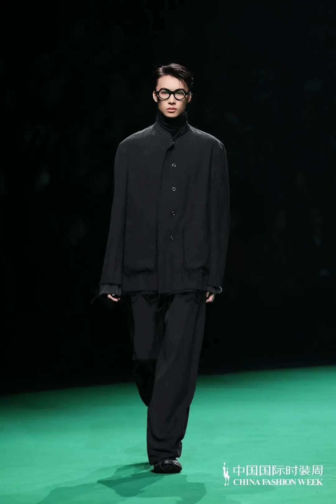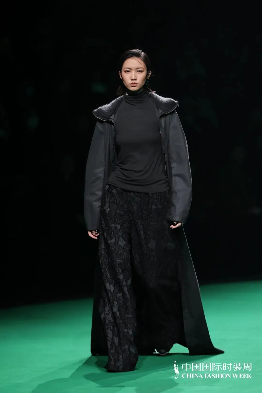 本次作品发布会主创设计师为北京服装学院副院长、教授、博士生导师邹游,以“奇峰岁月Peak/Epoch”为主题,探讨服装作为时间媒介所镌刻的美学线条。大秀将20世纪西方早期设计师与中国文人的形象并置,使不同空间的知识分子着装风格在形式结构与审美意韵上形成映照与对话。设计团队打破服装固有款式结构,强化内外、上下层次的穿插关系,并融合绗缝、毛边等传统工艺,将20世纪初的现代性转化为可感知的时代气质与穿着情绪。