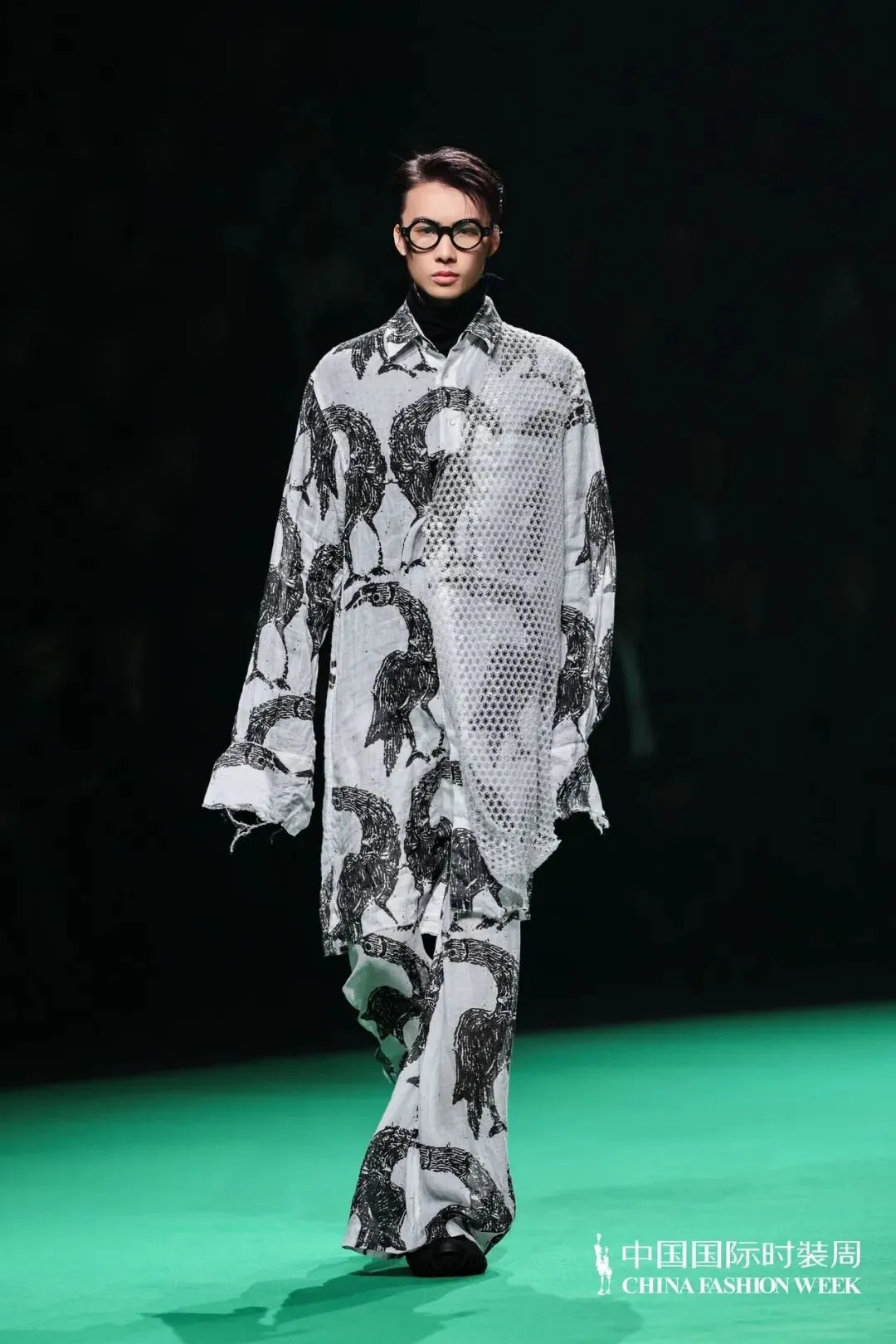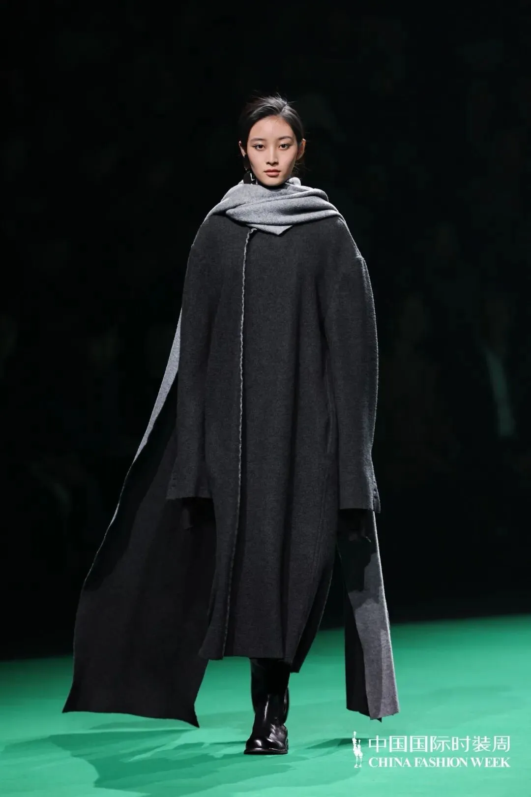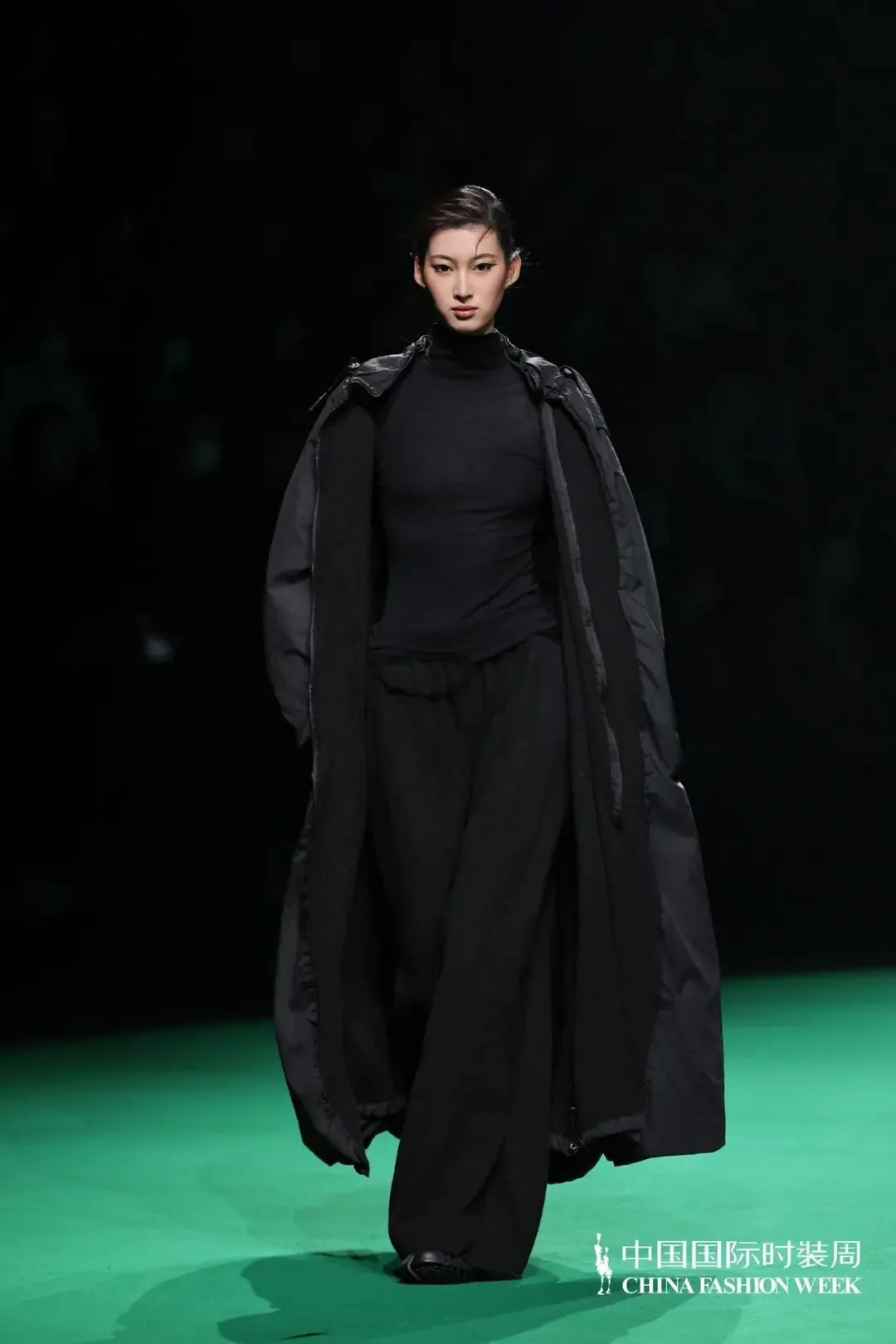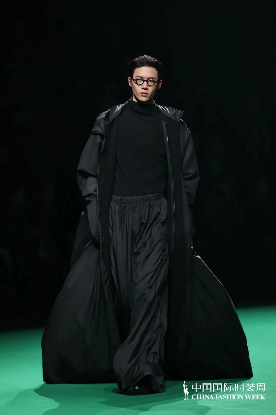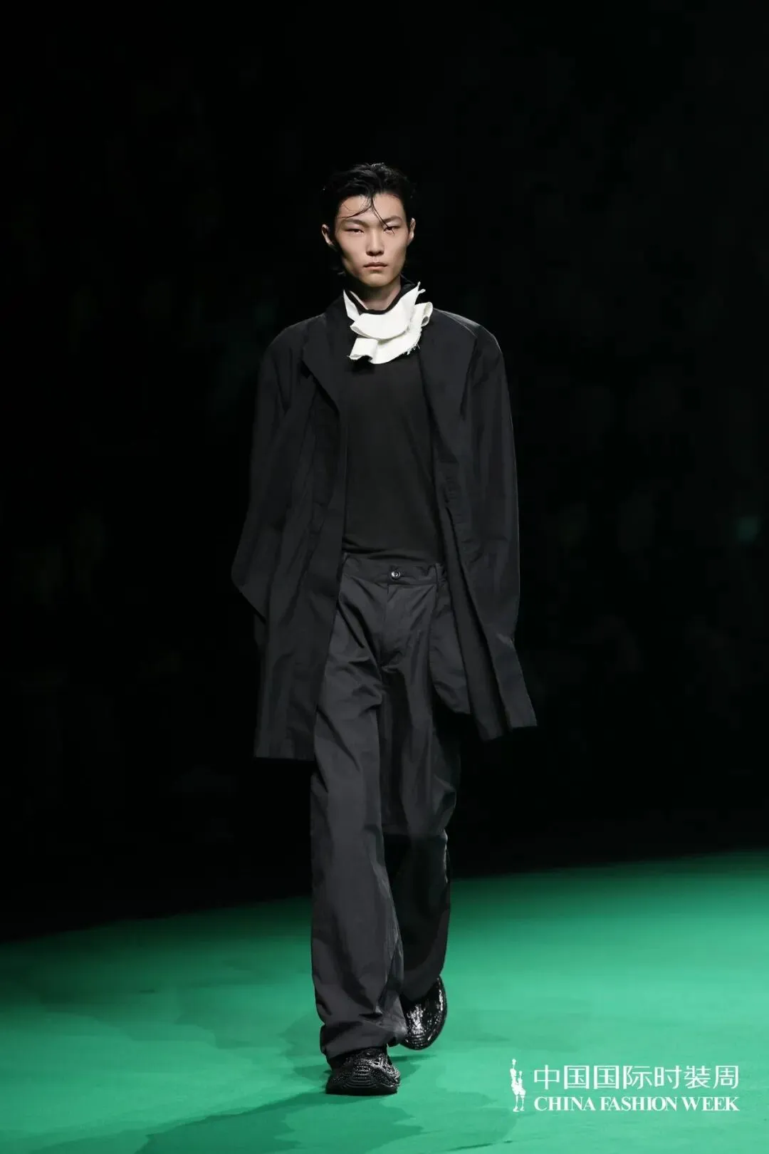 本次作品发布会主创设计师为北京服装学院副院长、教授、博士生导师邹游,以“奇峰岁月Peak/Epoch”为主题,探讨服装作为时间媒介所镌刻的美学线条。大秀将20世纪西方早期设计师与中国文人的形象并置,使不同空间的知识分子着装风格在形式结构与审美意韵上形成映照与对话。设计团队打破服装固有款式结构,强化内外、上下层次的穿插关系,并融合绗缝、毛边等传统工艺,将20世纪初的现代性转化为可感知的时代气质与穿着情绪。