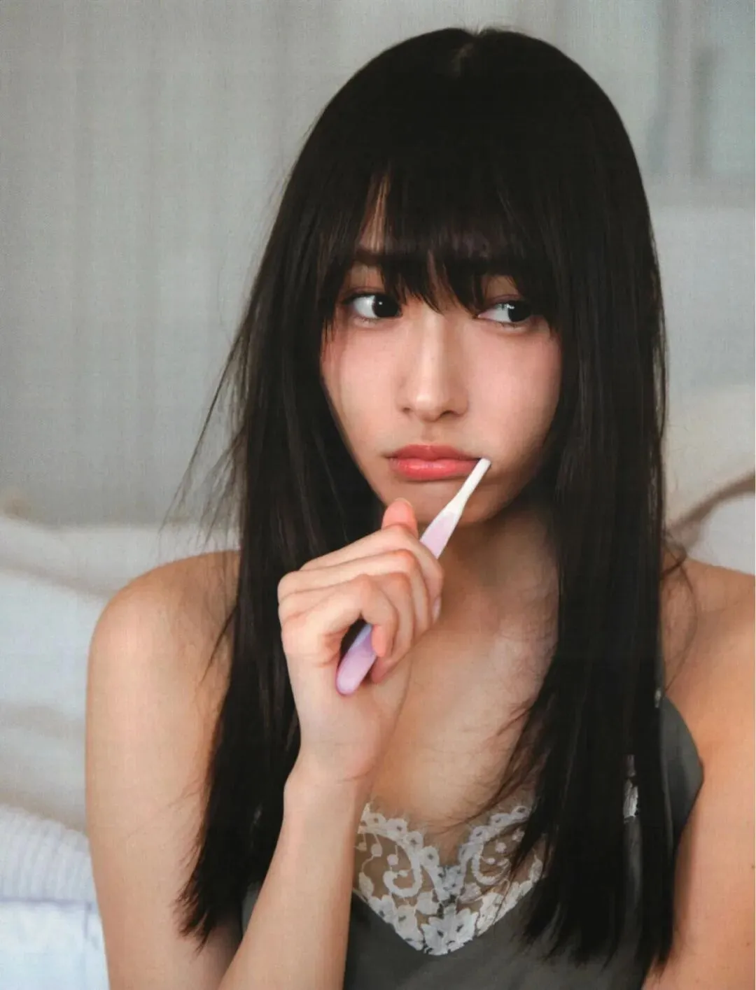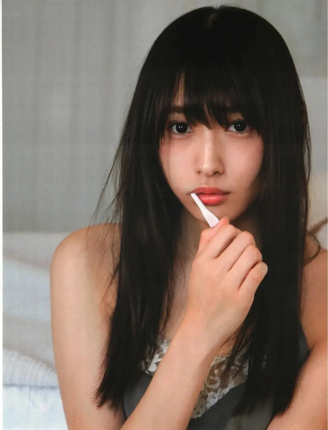 她以标志性的齐刘海与清澈眼眸出圈,作为团里最年长的成员,却始终带着天然的“废柴感”与温柔气场,成为粉丝心中极具亲和力的存在。2017年,她发行首本个人写真集《饶舌的眼神》,远赴希腊圣托里尼拍摄,以蓝白建筑与爱琴海为背景,记录下22岁的自己:在海滩上迎着海风自拍,在石墙前慵懒静坐,在房间里研究旅行地图,用最松弛的姿态展现不加修饰的自然美。从欅坂46到樱坂46,她在偶像生涯里始终坚持自我,不刻意迎合,也不轻易妥协。2021年毕业后,她转型为时尚模特与演员,在《LARME》《Ray》等杂志中展现成熟女性的优雅魅力,用行动证明:温柔从来不是软弱,而是最有力量的底色。