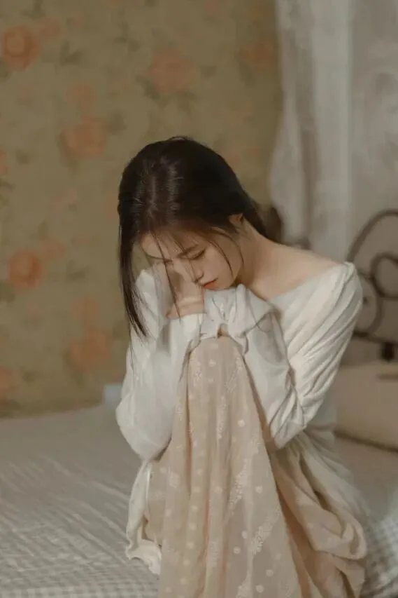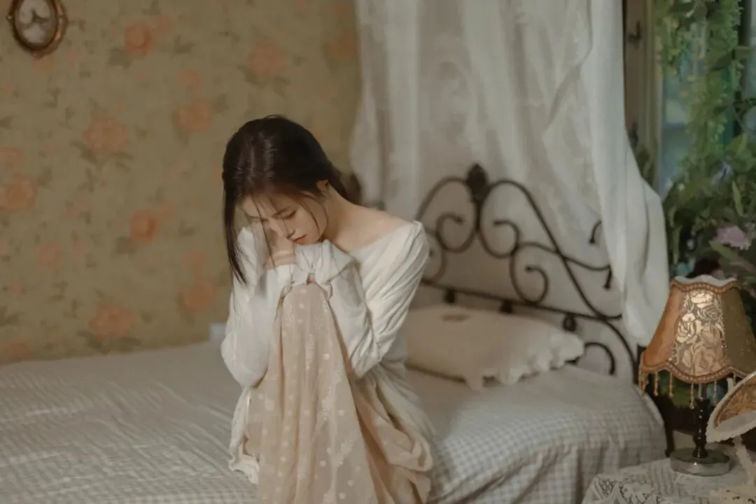 ▲"你坐在床边,抱着那个玻璃罐,发会儿呆" → 捕捉到了蜷坐床边、眼神放空的自然状态