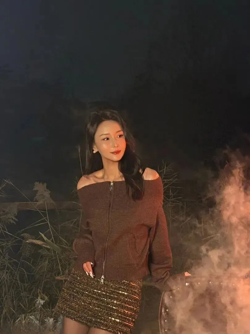露肩毛衣还有种更蓬松的材质,穿上之后会有层次感。当加上亮片短裙和黑丝的时候,整个画面就形成了温柔又调皮的效果。
