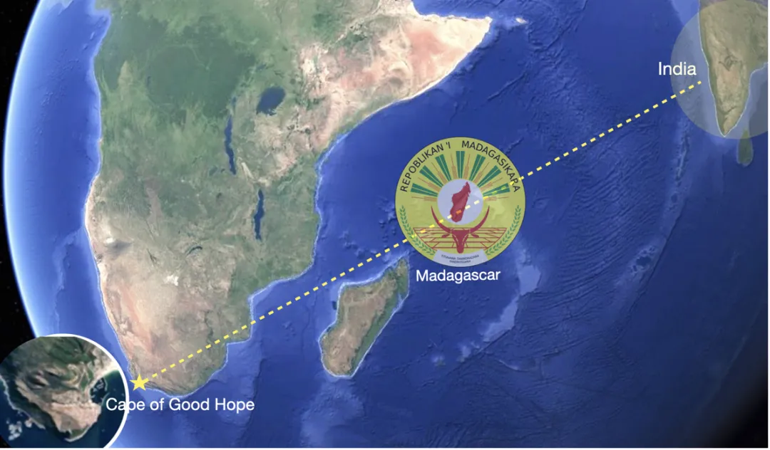 在她们之间坐落了马达加斯加岛,这个岛的形状宛如一个女性身体的骨骼,其国徽主题画,是一只红色的圣牛头托举起岛的圣体。在马达加斯加和印度,牛象征着生命之母,是灵魂与大地的神圣载体。印度湿婆的坐骑南迪,正是圣牛之灵,守护着宇宙的生死轮回。