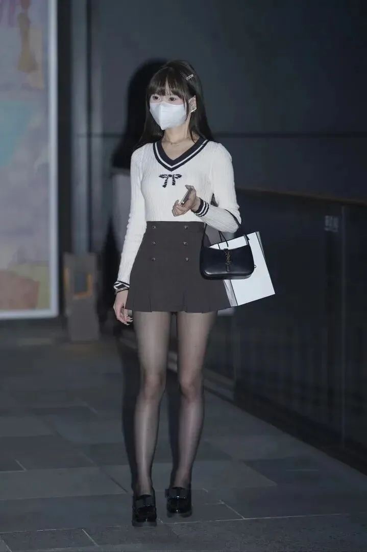 夜色里的学院风女神穿得温柔到骨子里,路人都在偷看