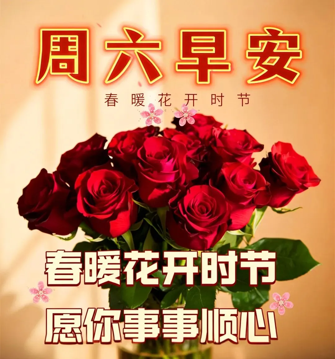 周末早安,祝福相送:愿你的周六从容自在,所想皆可做,所盼皆可期。家人闲坐,灯火可亲;知己相伴,笑语盈盈。把平凡的日子,过成喜欢的模样。福至心灵,顺遂安康!
