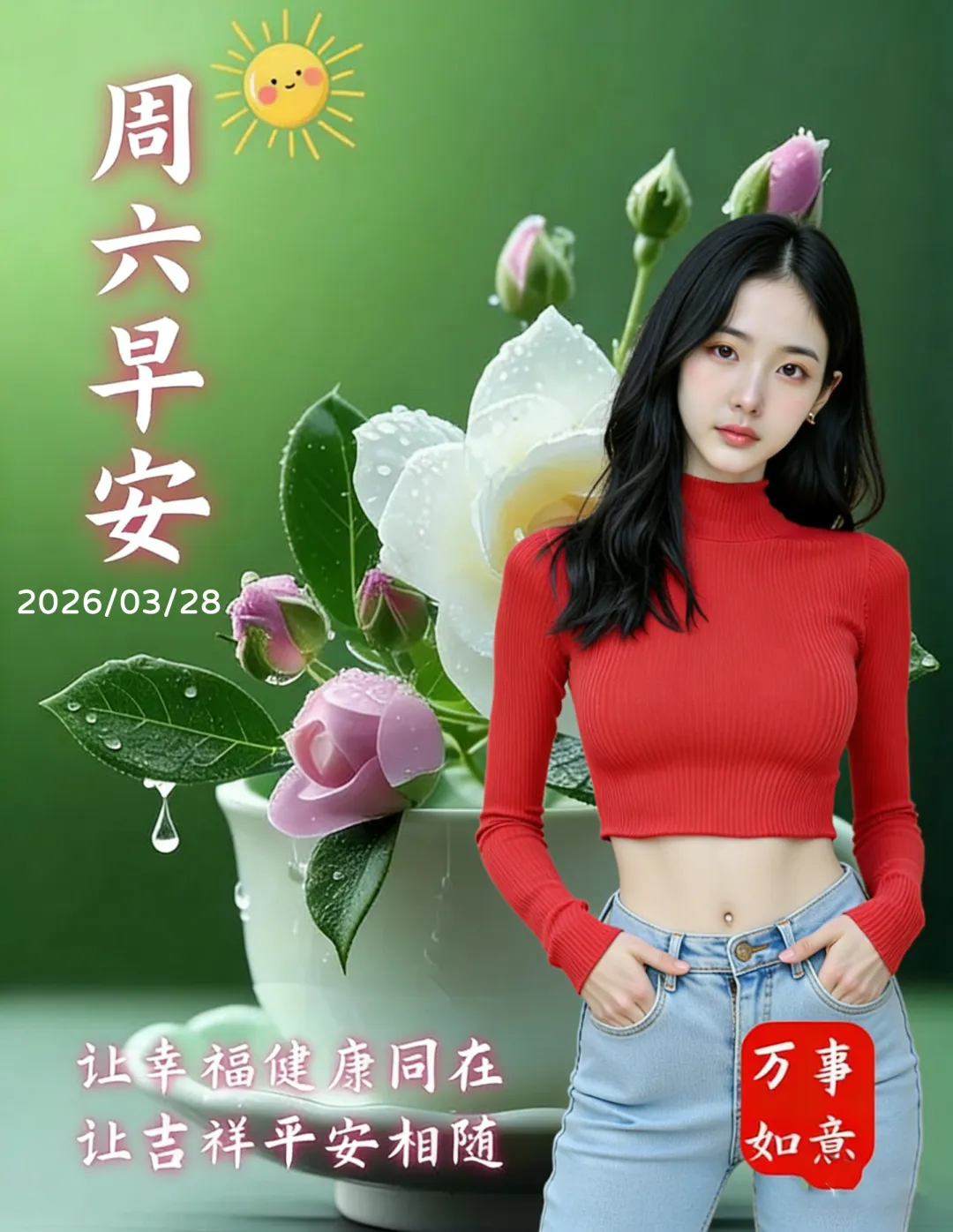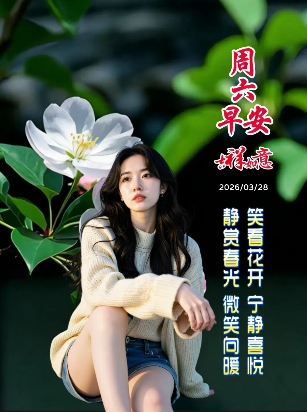 当前位置:首页>美女资讯>3月28日-美女周六祝福图片,星期六早安图片