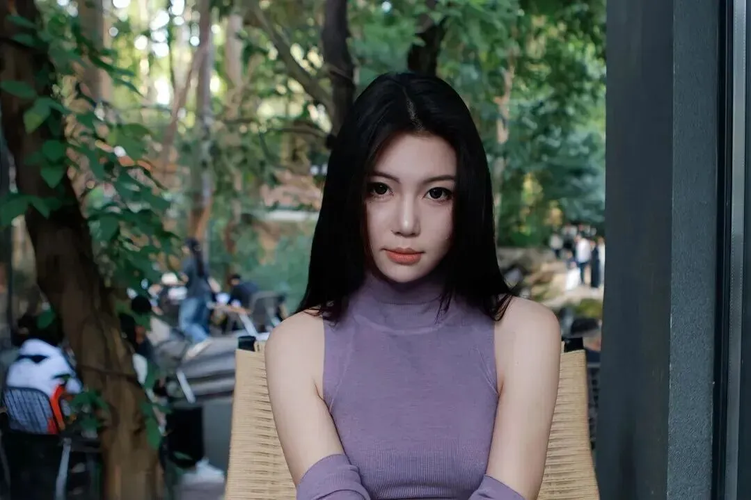 不要小看了这个袖套,看上去很简单,但是可以瞬间增加穿着者的层次感。无袖上衣最易暴露手臂,袖套可以很好地解决问题。坐在户外椅上,一只手放在椅子上,无名指上戴的素圈金戒指很小也很精致。暖橘色的唇釉能使气色更好,妆容干净清爽。阳光透过树缝洒下来斑驳的光影,氛围感直接上位!