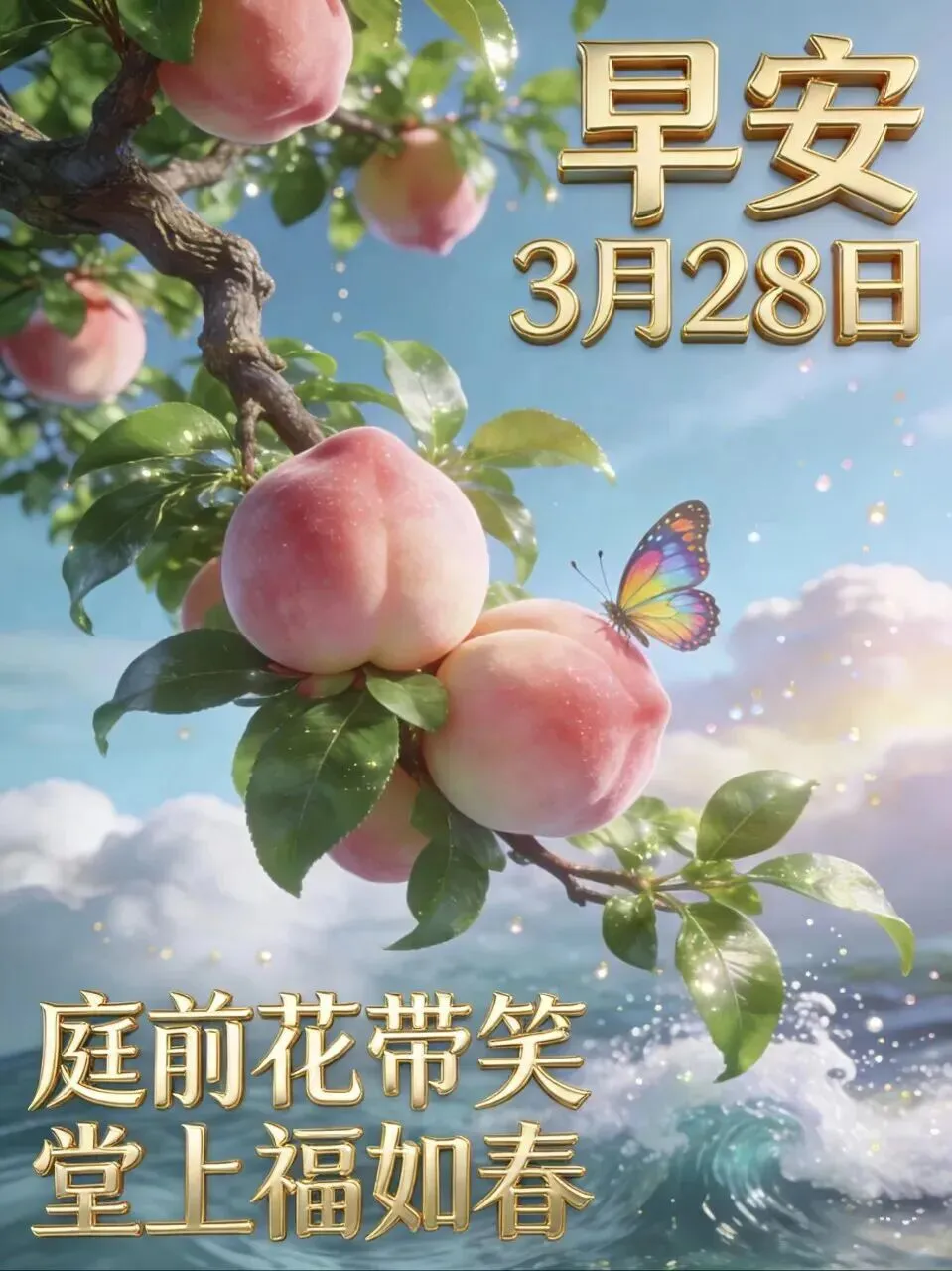 春天到,晨光照,平安喜乐身边绕;多珍重,常欢笑,晚年生活步步高,早安!