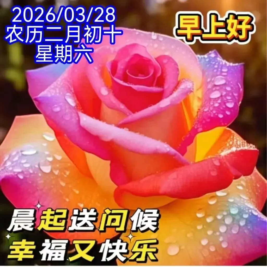 朝霞满天喜洋洋,平安健康日月长,祝福送到你身旁,甜蜜日子同分享,喜乐笑容挂脸上,晨风送福好运扬。早上好!🌹,🙏🌸❤️🍻🎉