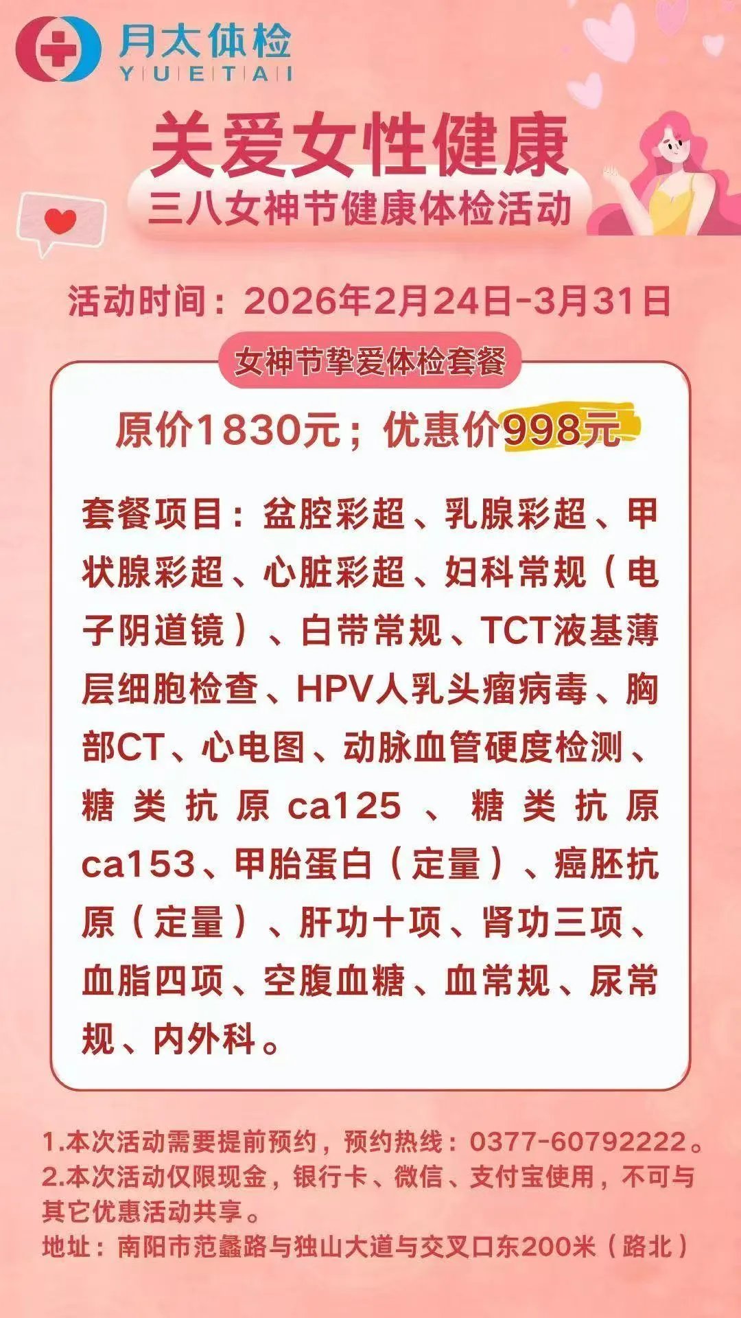 最后倒计时!南阳月太体检女神节优惠即将截止,错过再等一年!