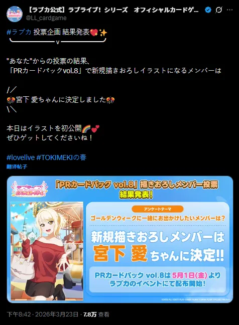 事情的起因与《LoveLive!》卡牌手游官方放出的一张宫下爱的全新插画有关。