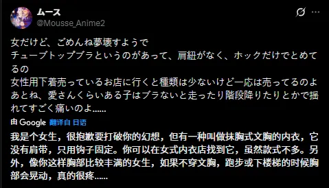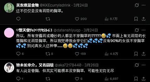 众多网友们的吐槽可以说是既精准又扎心,然而他们的核心观点只有一个:“兄弟,你到底知不知道世界上有一种东西叫「无肩带胸罩」啊?