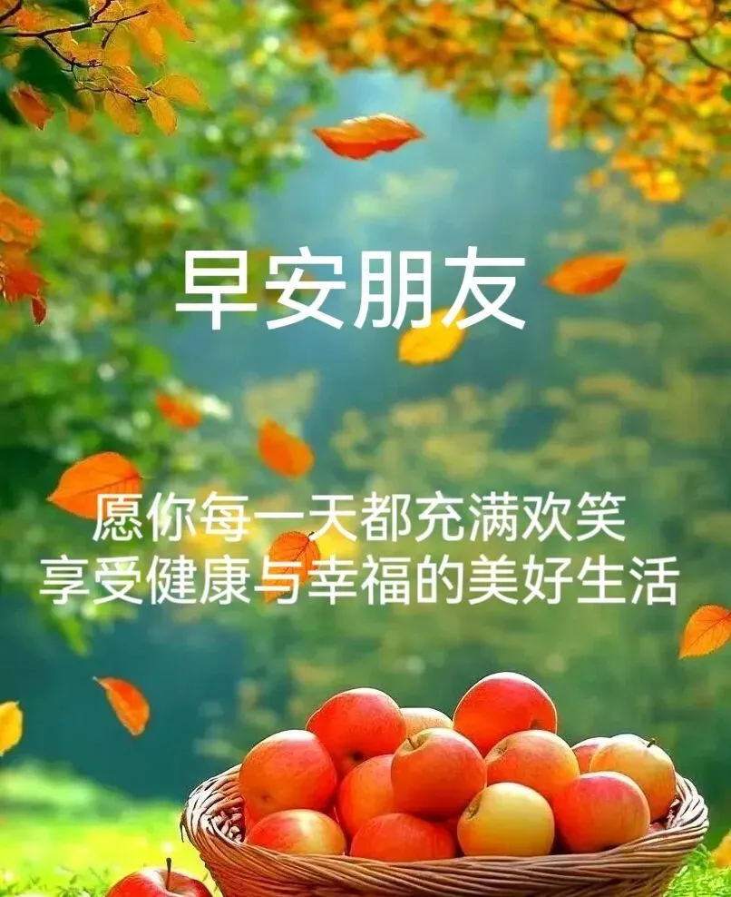 1,落叶飘零秋风起,细雨飘飘秋来临。愿秋雨为你带来凉爽,愿秋风为你带走忧伤。朋友的思念,犹如风中飘零的秋叶,随风飘散。愿片片秋叶,都为你捎去一份祝福,愿您健康快乐!早安!