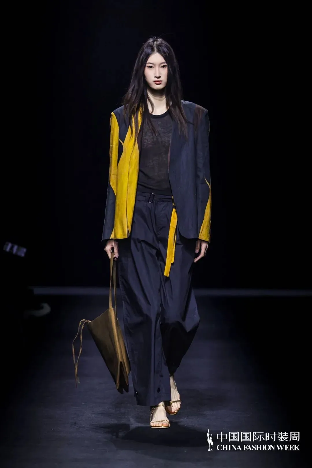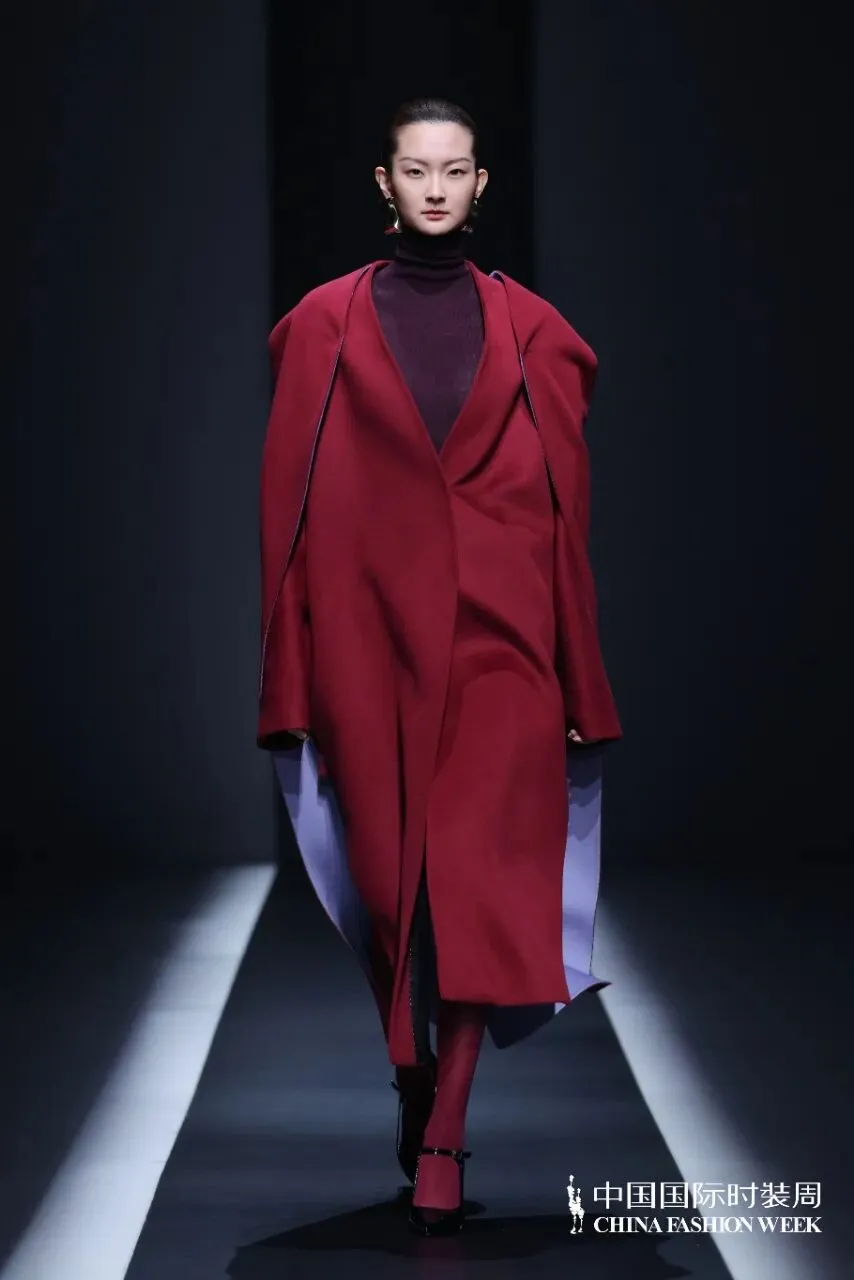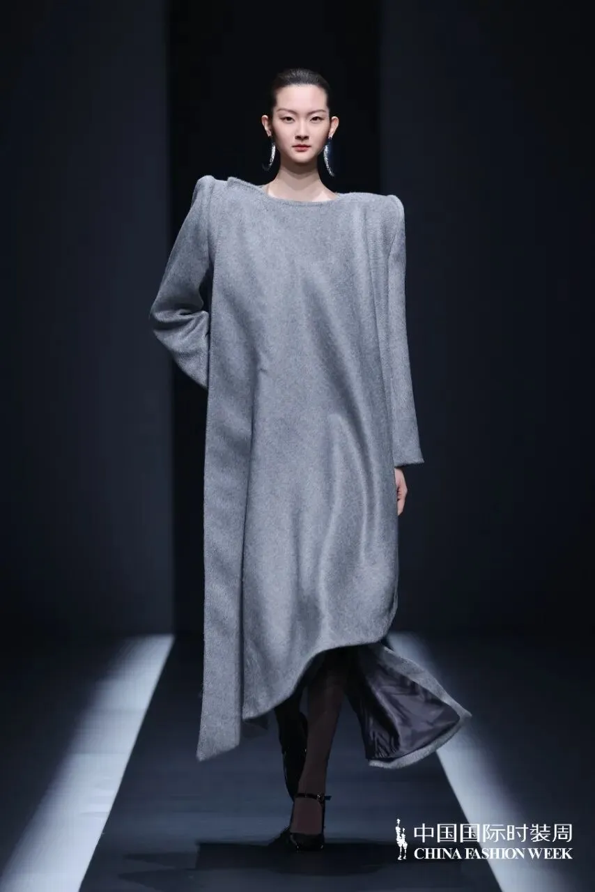 本季主题:川行与纪,本季设计理念介绍:山川为形,湖波为韵:流动的东方美学灵感溯源:天地自然的线条诗学,也是立体裁剪的山水实践,工艺上主要运用绳结技艺,将其运用在服装结构线中,强化结构线,突出服装空间感,是主题的意象表达,同时使用绳结工艺代替缝纫线,是绳结技艺的功能体现,面料上主要采用皮革和毛呢相搭配,部分搭配织带进行设计,将“行于山川”浓缩为一部纪实录,带有都市漫游与诗意探索的双重气质,既像一本旅行手记,也像一场时装纪录片。