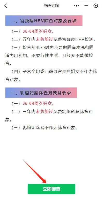 2、既往已确诊为宫颈癌早期病变或者宫颈癌、乳腺癌患者不参与检查。