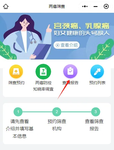 线上“两癌”筛查预约和报告查询流程简图