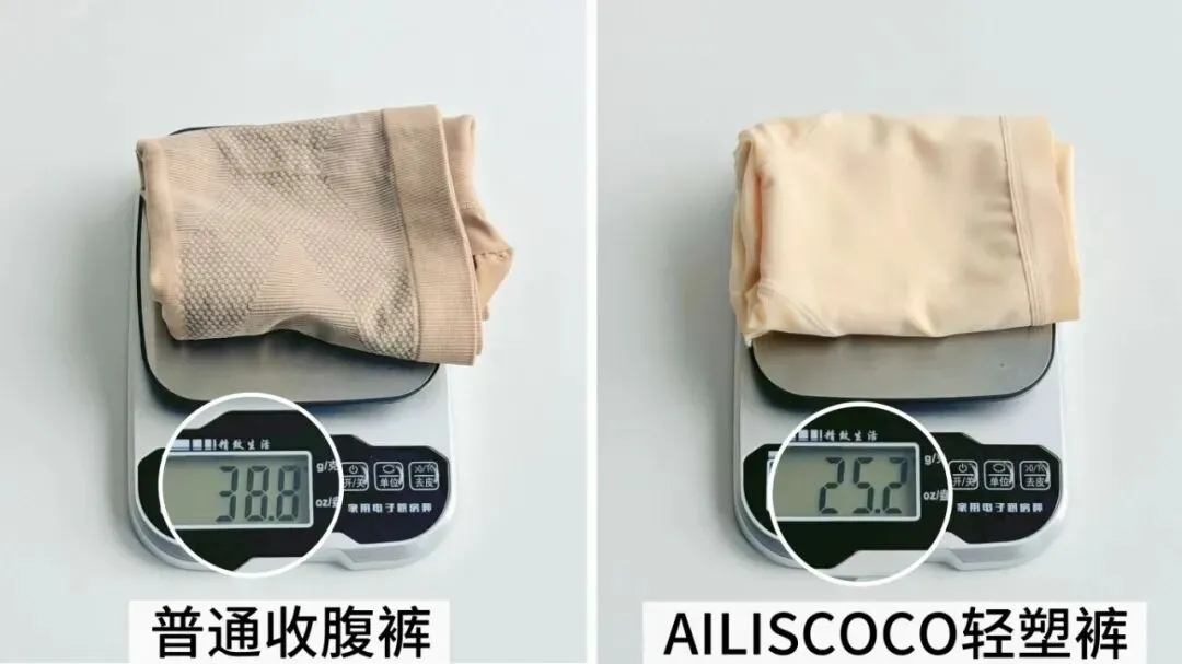 比起常见的收腹裤,重量轻了13g:
