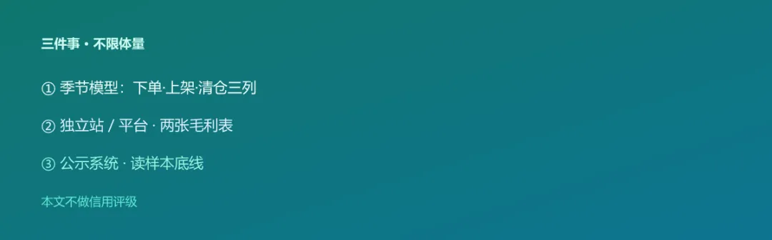 对照旧文:快反与规模边界见第 16 篇《Shein「小单快反」》服饰上市卖家读法见第 11 篇《子不语》。