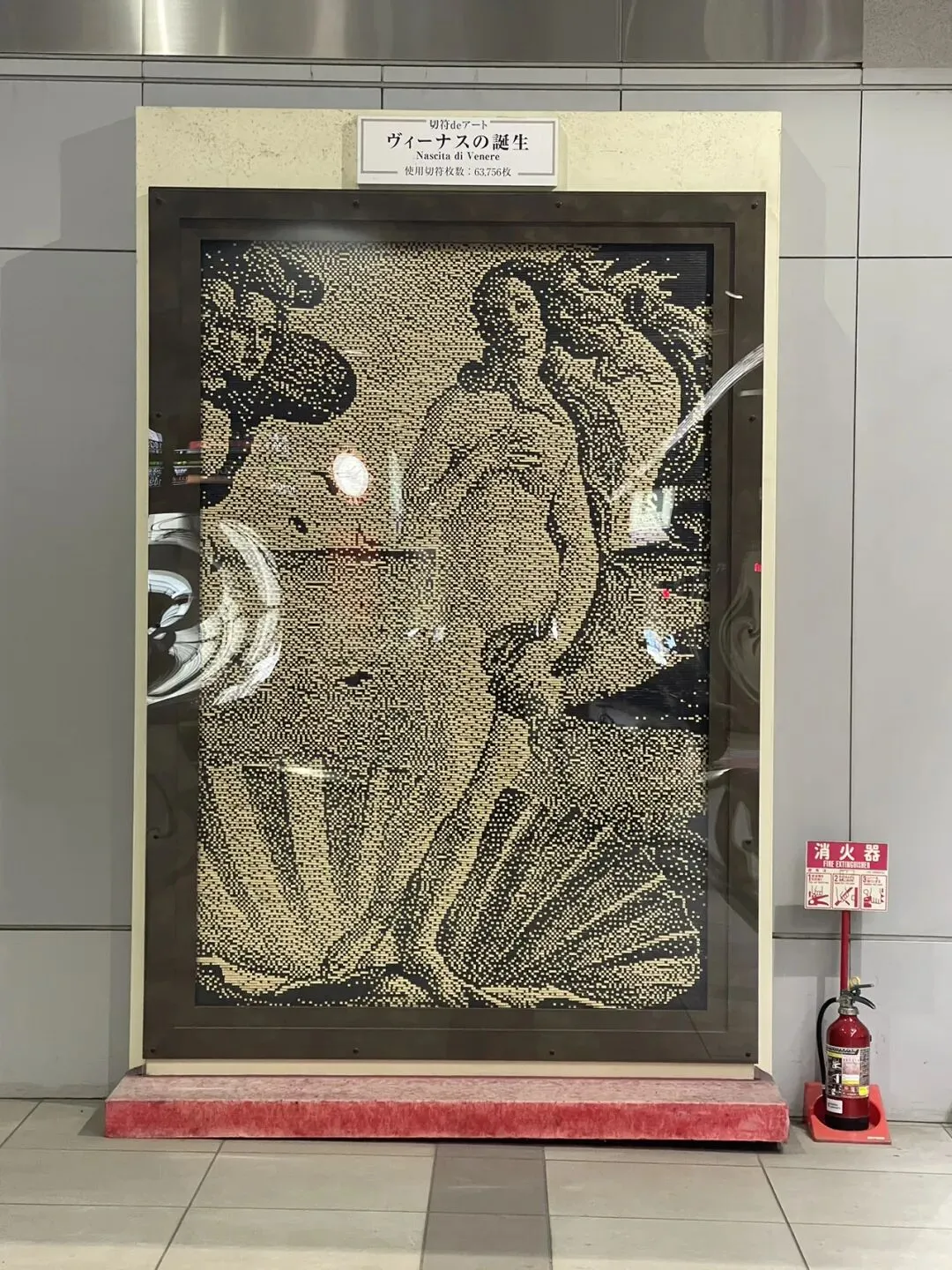 从车站出站,一抬头看见车票拼成的《维纳斯的诞生》。