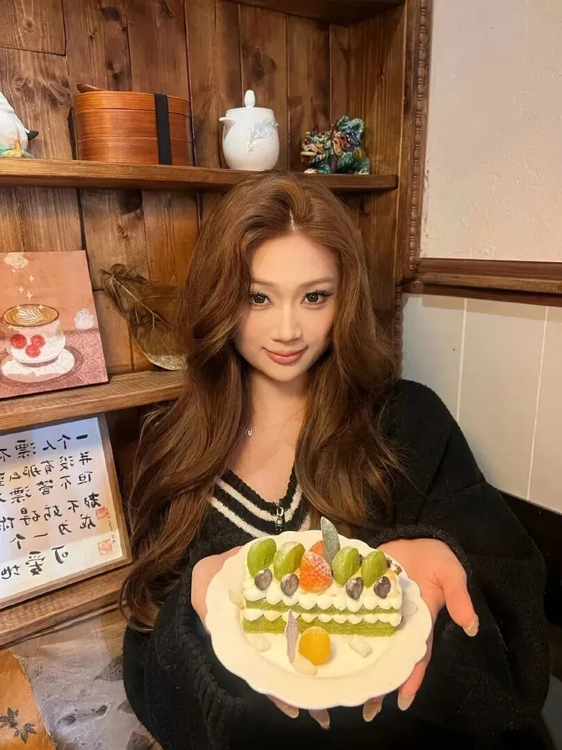 以下配黑色短裙、丝袜,带有小性感却不失优雅的风格,是典型的日本松糕风。妆容也是清淡的,浅浅地一笑就让人感到很治愈。整个形象柔美又大方,让人忍不住想要再多看几眼。