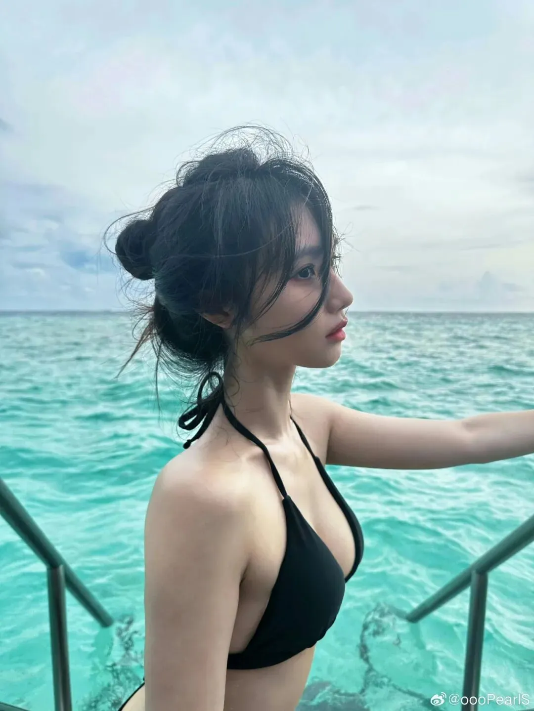 真正的浪漫,有时候就是这样简单。不需要繁复的蕾丝或鲜艳的色彩,一身最简单的黑色,一颗随性的丸子头,就足以在海边构成一幅动人的画。