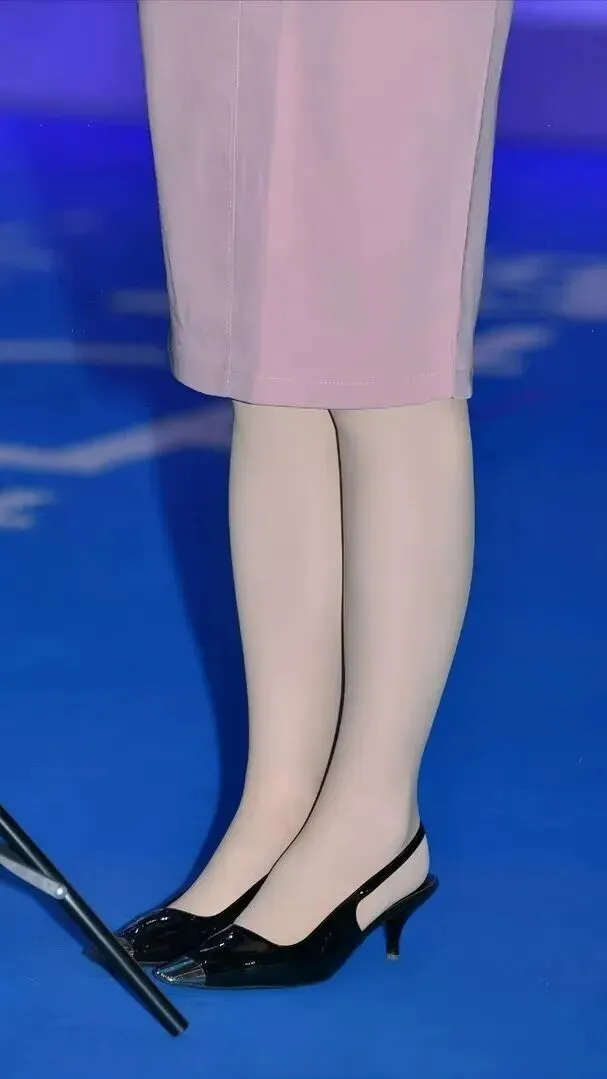 她穿了肉色丝袜,几乎看不到。丝袜可以改善腿部肌肤表面粗糙的程度,并且具有一定的防寒效果。正式场合穿丝袜会更合适。