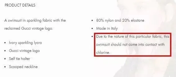 正因为这样,一些销售网站上,甚至还特意提醒不要穿这件泳衣进泳池。有的网站甚至还直接忠告:不建议穿此泳衣下水。