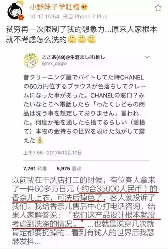 说起来,奢侈品牌似乎从来不会考虑到穷人们的想法,之前不是有网友爆料吗,一个妹子花费35000人民币,购买了一件香奈儿上衣,在洗过之后竟!然!掉!色!