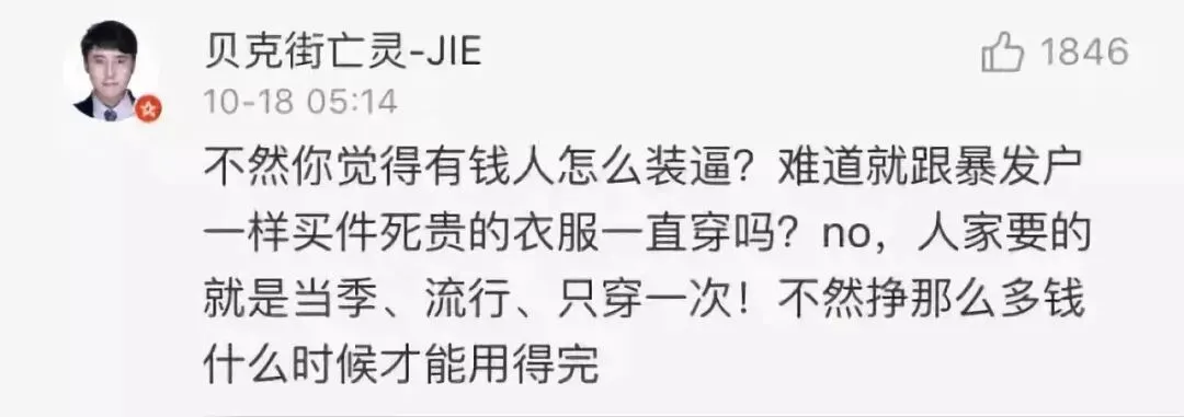 这件衣服,更是引发了很多网友“集体哭泣”:呵呵,水洗干洗只是穷人需要考虑的,有钱人的衣服都是一次性的!