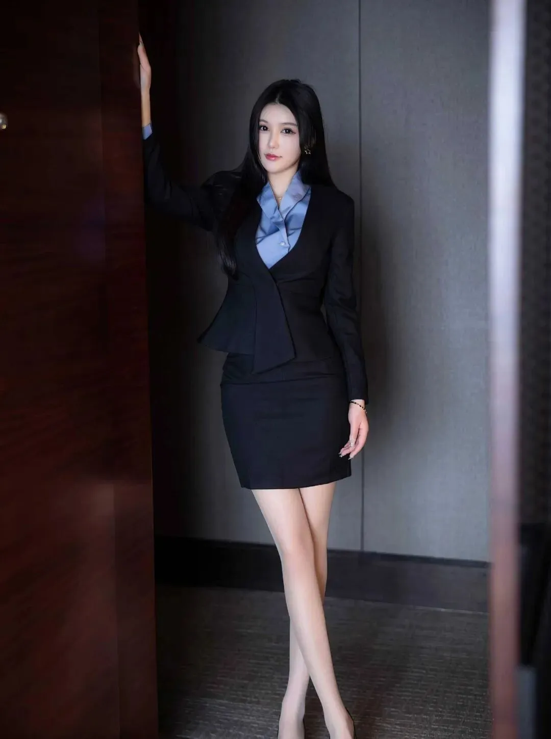 当前位置:首页>美女资讯>女神:当她穿着黑色制服走过,整个办公室都安静了