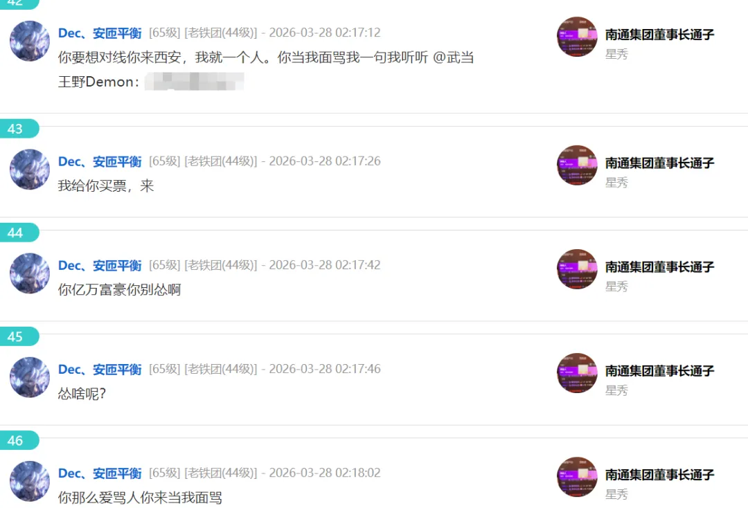衡哥不愿多说,直言:你要想对线就来西安,我就一个人,我给你买票!你亿万富豪怂啥啊?你那么爱骂人,你来当我面骂!