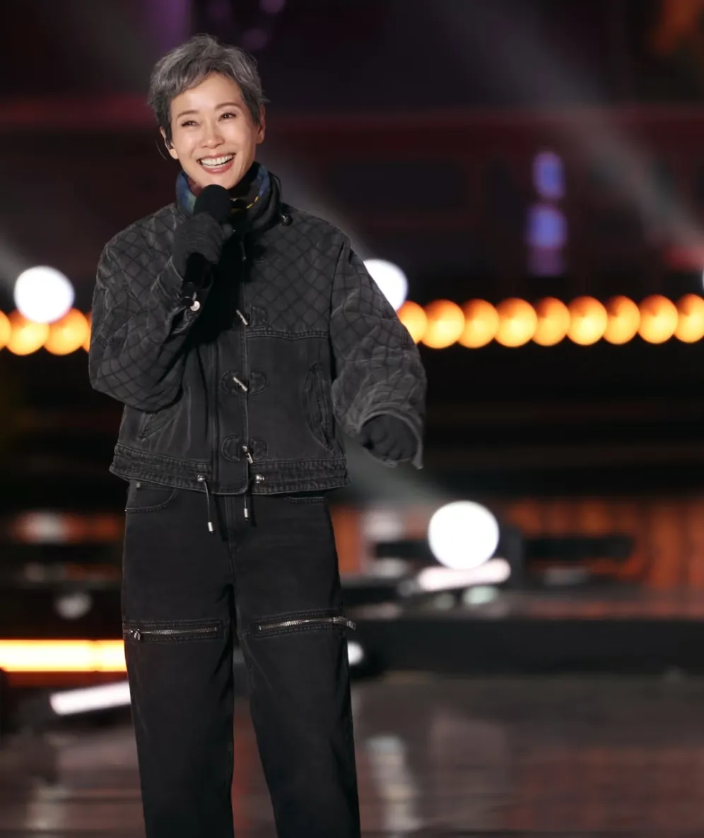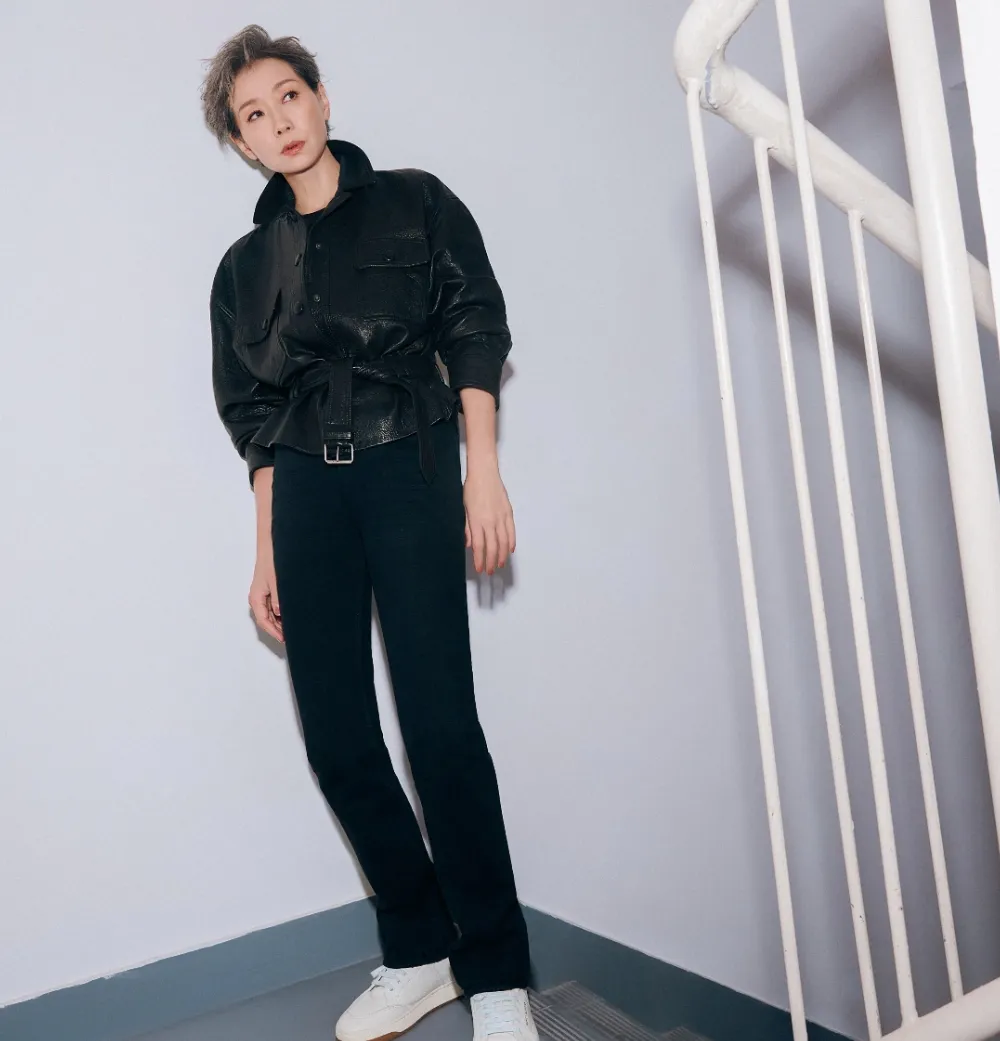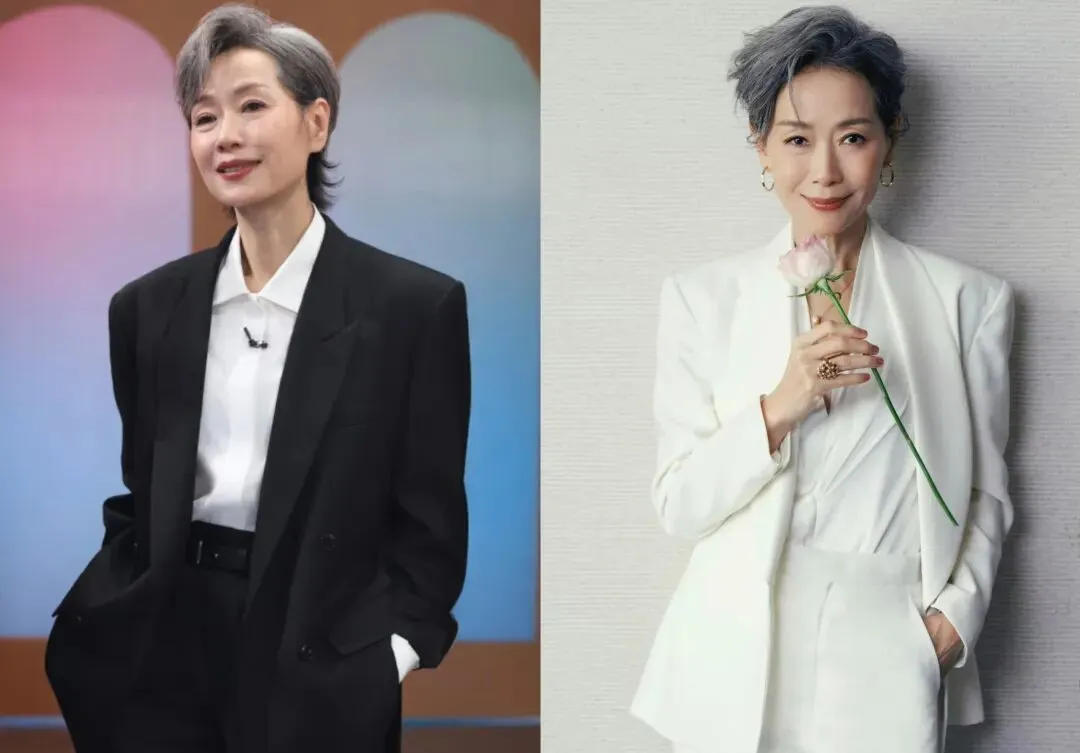 叶童银灰色短发搭配白色西装,把“潇洒姐”的感觉发挥到了极致。西服的长度可以盖过胯骨3-4厘米左右,里面穿了白背心、透明灰高领衫,分层感很强。敞开着走的话有风度又不失优雅,在扣上之后就是一种更加正式的感觉。“能不能照抄”这一点普通人很难把透明高领穿上这样自然舒适的样子,但是身边戴的银耳钉以及短发都给了它一些缓冲空间。