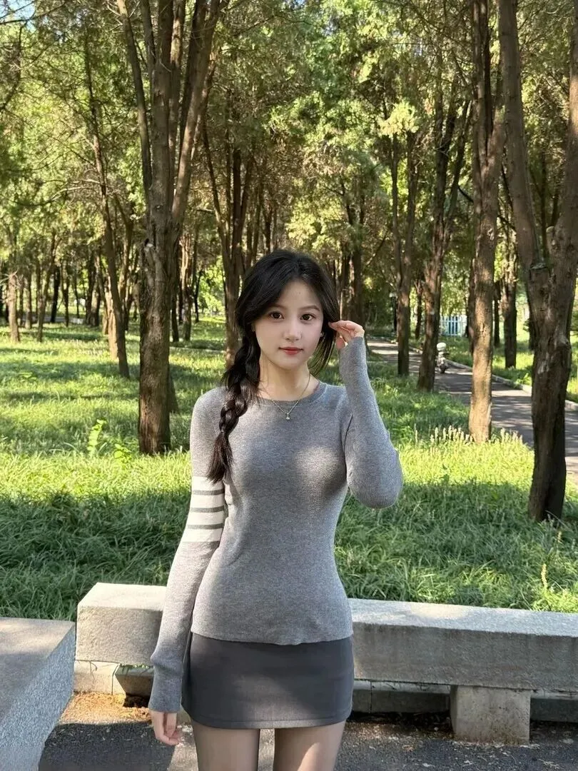 阳光暖暖地照耀着公园里的树影婆娑,一位姑娘坐在长椅上,整个人都被灰色的穿搭所包裹,那种温柔的感觉一下子就引起了人们的注意。灰色并不普通,只要会搭,马上就会得到高级感。本文将主要分析该女士怎样用灰色色系达到很好的着装效果。