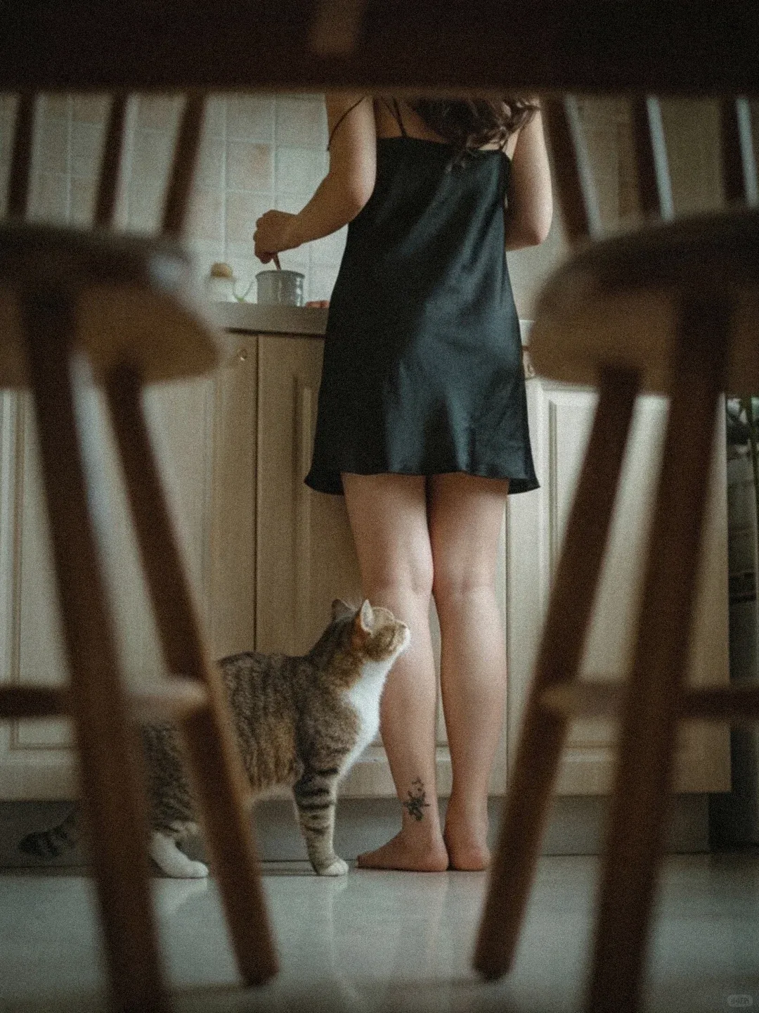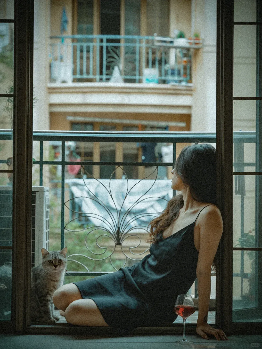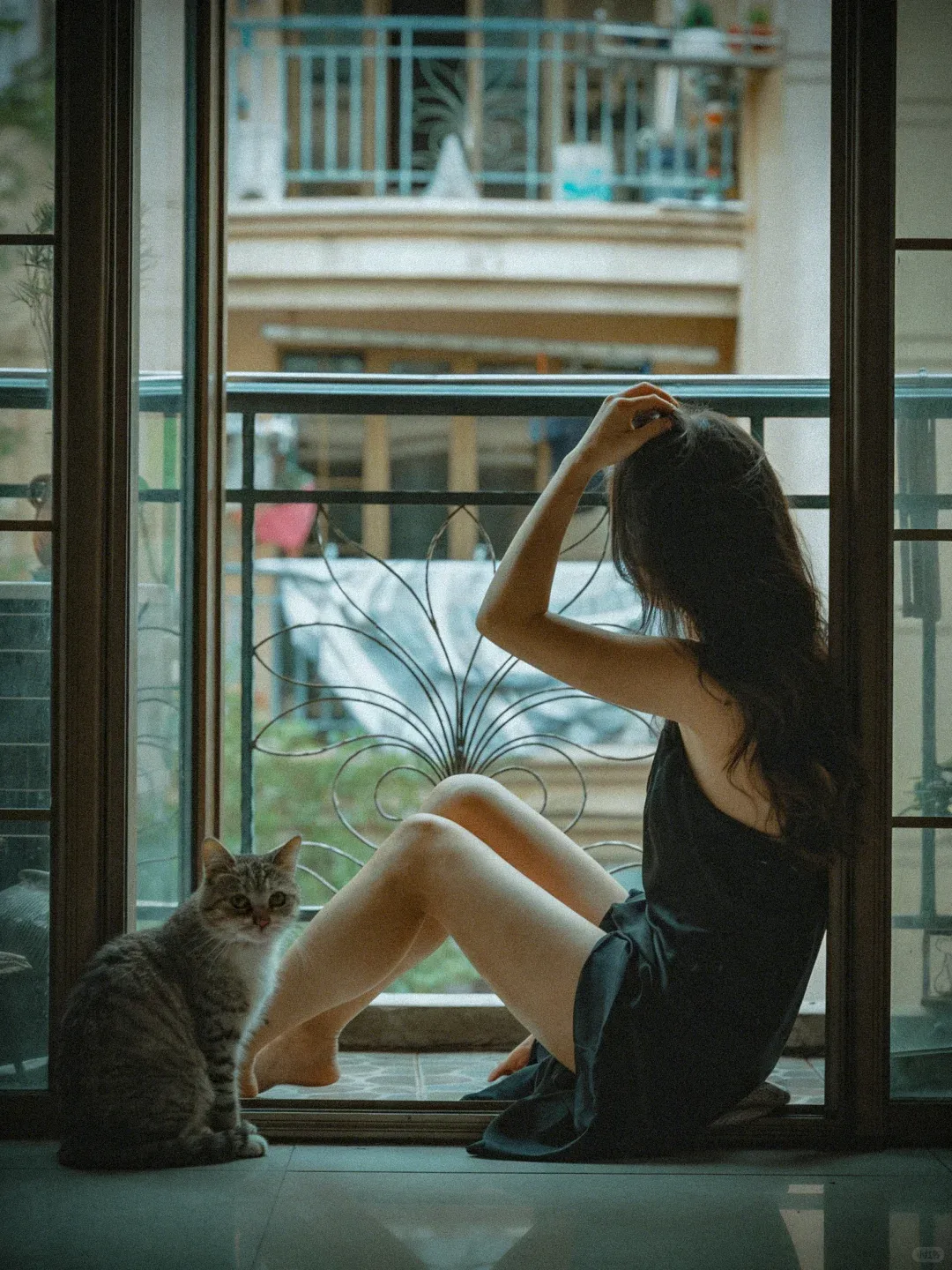 还有一个构图小心机,一定要试试!把家里的推拉门半开,用窗框做天然的画框,把人物和猫咪(或者道具)框在中间,瞬间就有了“偷窥视角”的故事感,还能弱化背景的杂乱,氛围感直接拉满~