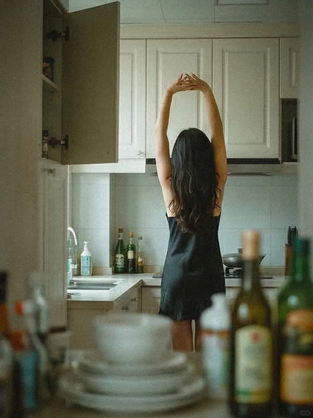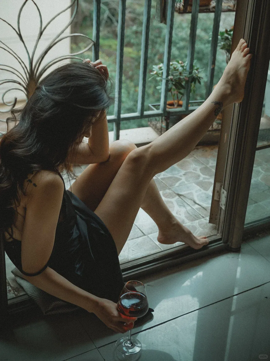 比如拍侧脸轮廓,对着窗边,让光线勾勒出脸部的线条,不用刻意做表情,轻轻垂着眼,氛围感就出来了;还有手部动作,比如端着一杯红酒、摸着沙发的抱枕、拨弄散落的发丝,这些小细节都很出片,能体现出慵懒的松弛感。