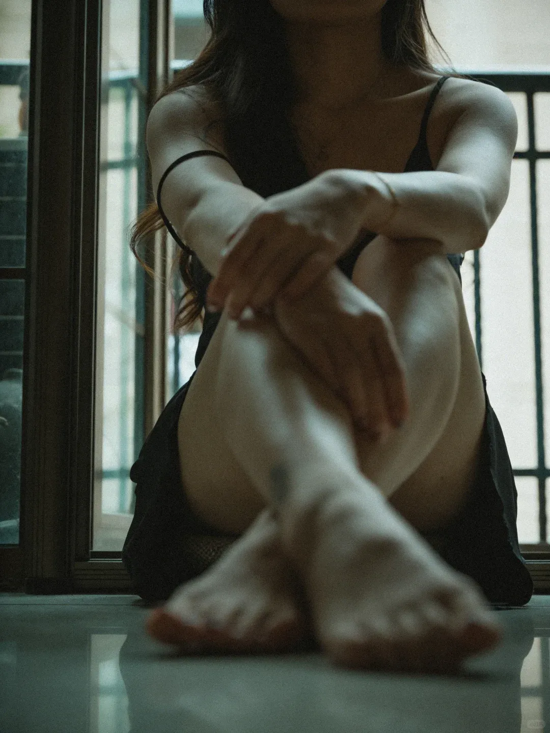 新手最容易犯的错误,就是刻意摆姿势,结果拍出来浑身僵硬,一点都不自然。记住:居家写真,姿势越随意、越松弛,越出片!