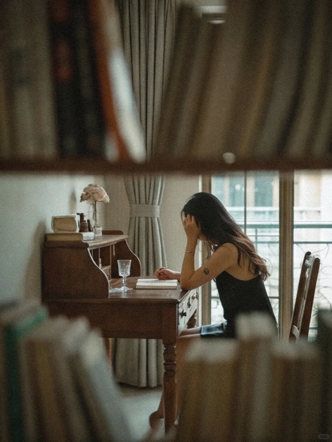 首选窗边的柔光,下午2-4点的自然光真的绝了,不刺眼、不生硬,打在身上软软糯糯的,皮肤瞬间变得通透又细腻,自带磨皮滤镜。建议宝子们坐在窗边,让光线从侧面打过来,也就是侧逆光,这样发丝会透着柔光,脸上还会有淡淡的阴影,明暗对比之下,高级感不就来了嘛!