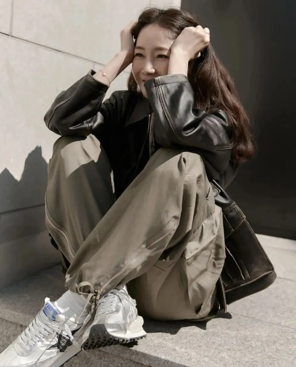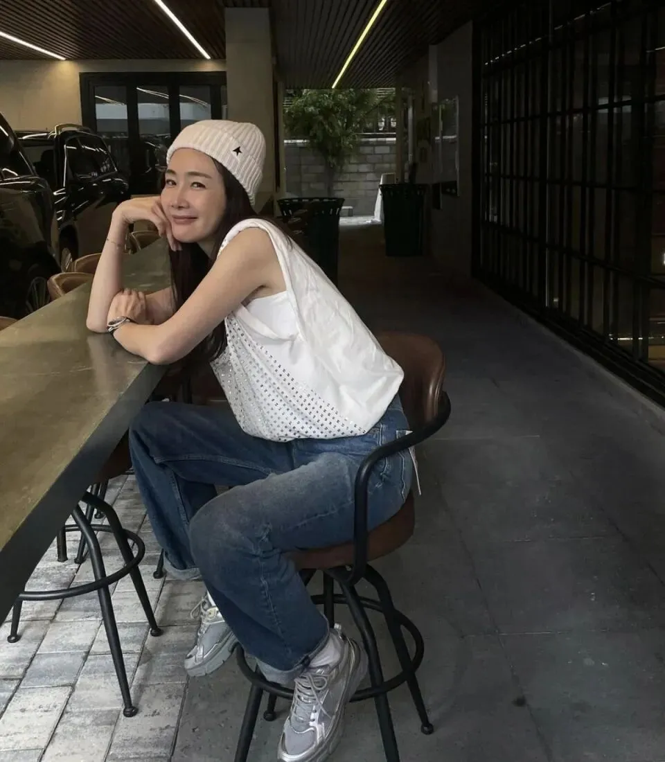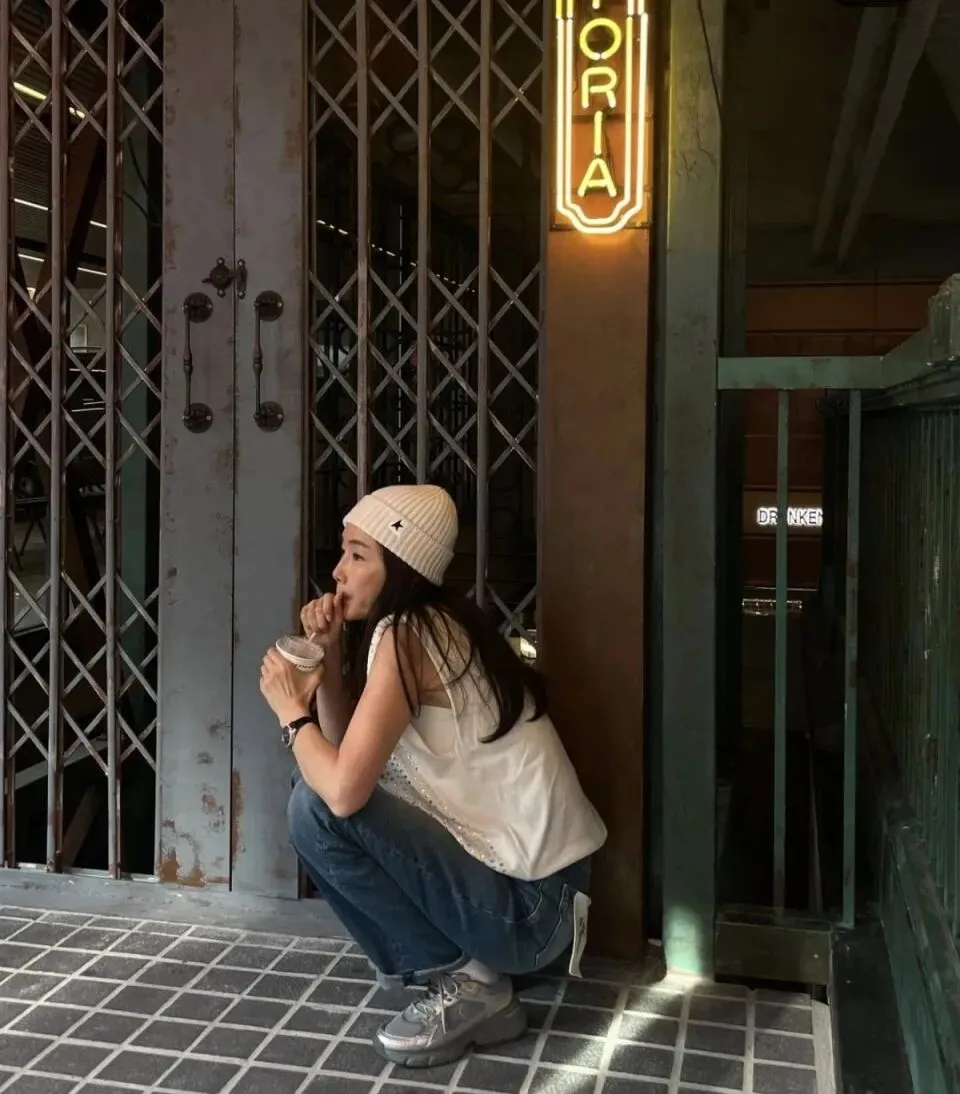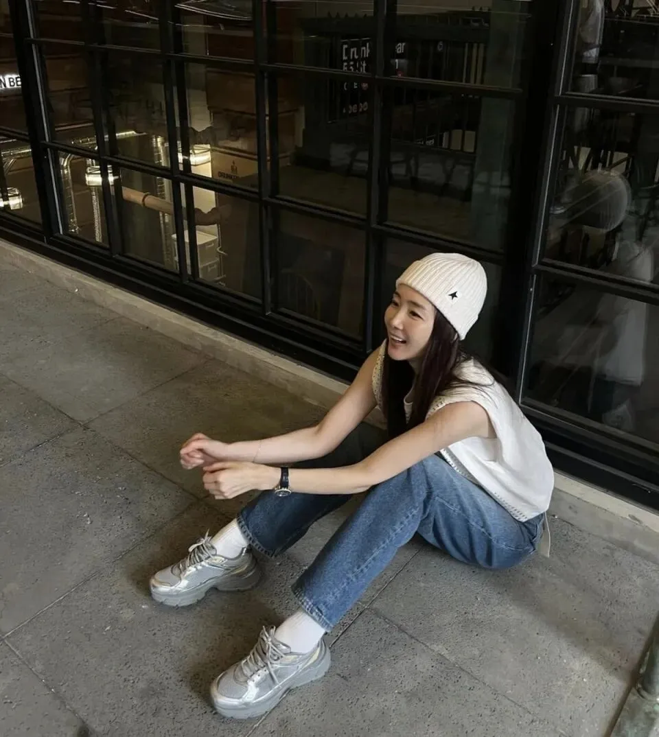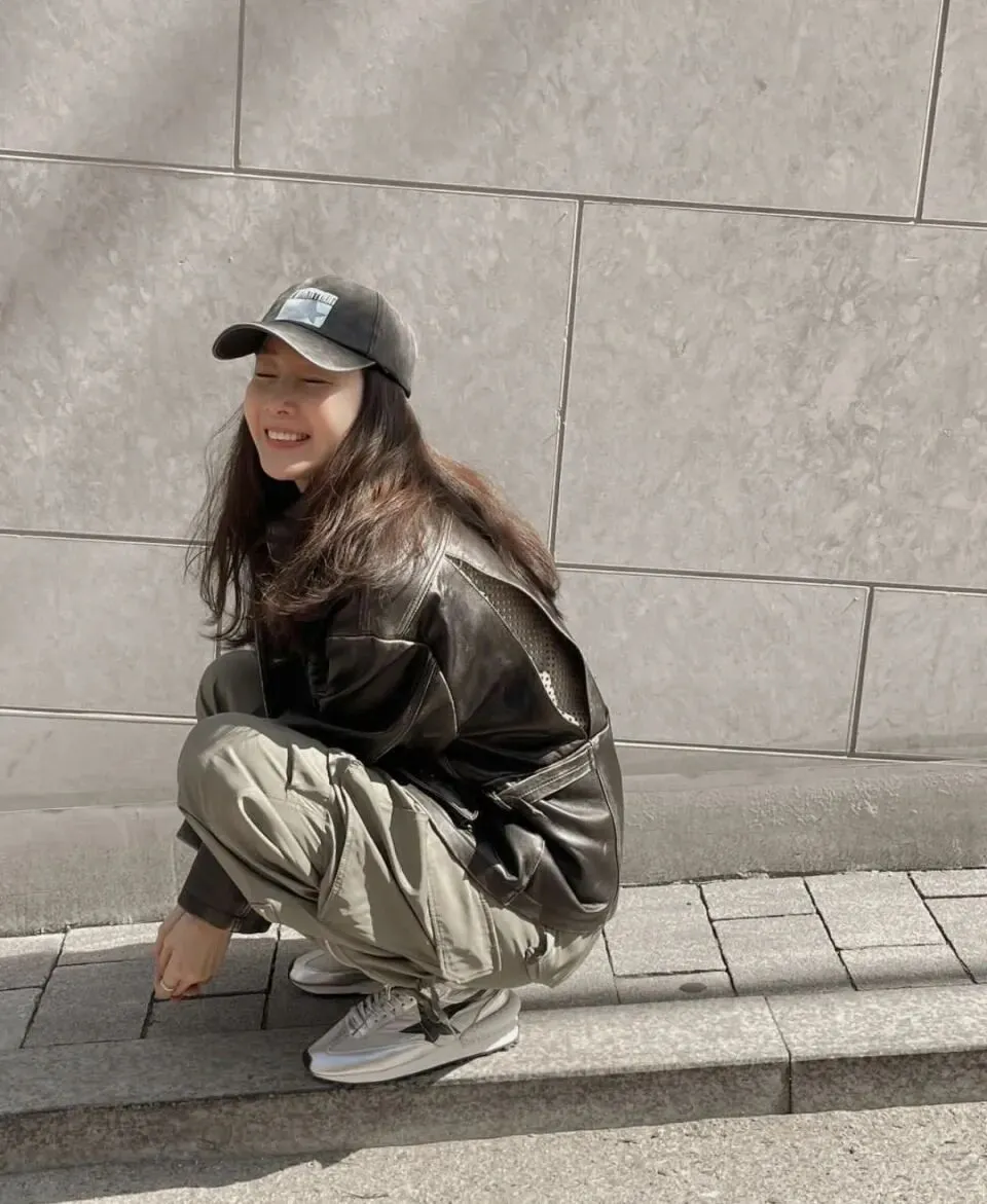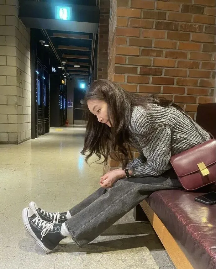 生活中,崔智友的穿搭自带松弛感,和剧里的形象完全不同。