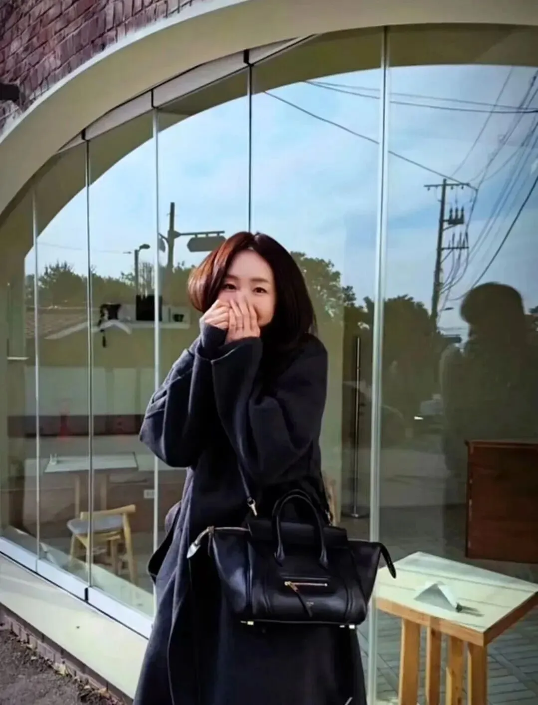 黑色大衣也永不过时。总之美人穿啥都好看。