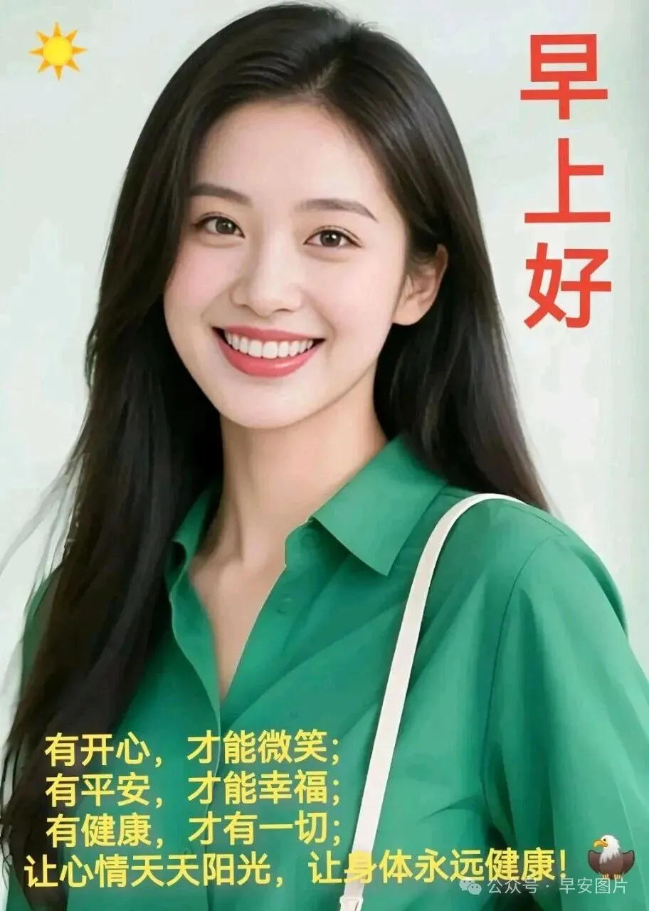 🌞美丽的早晨,灿烂的你,🌻美好的生活在等你!🍎美丽的天气,美好的你,🌺美好的情意滋润你!🌅清新的空气,清晰的你,🍹愉快的心情陪伴你!🎈愿你快乐每一天!🎉