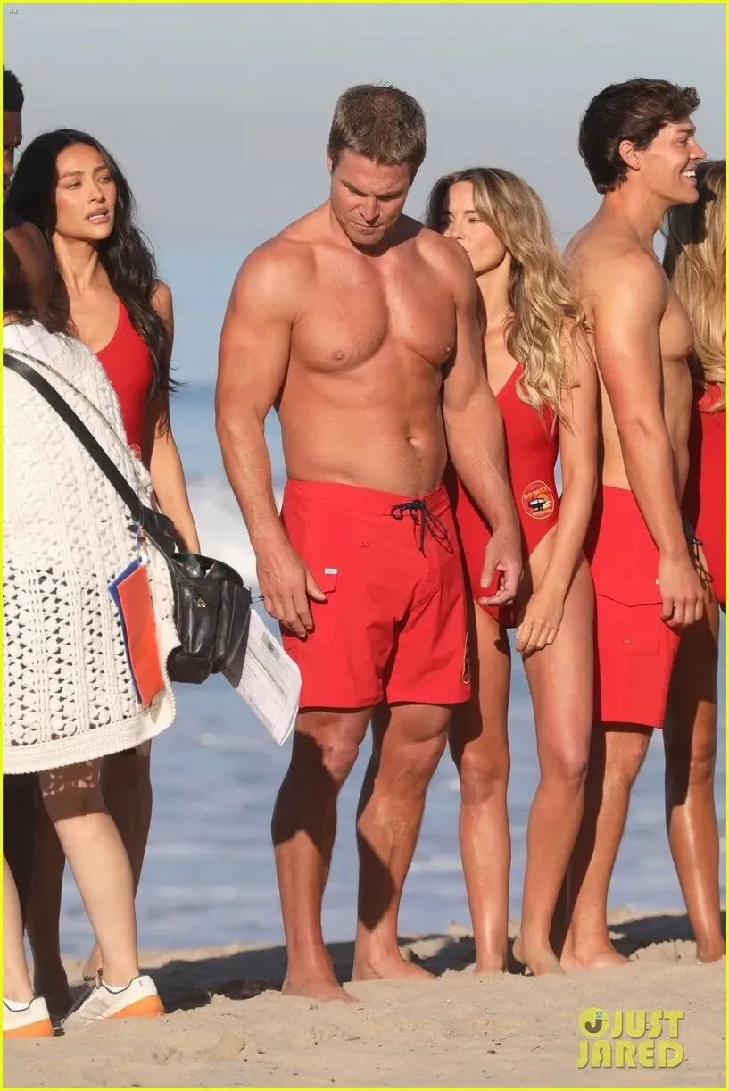 - 3月18日,主演们身着标志性的红色泳衣在洛杉矶海滩亮相,正式开机拍摄