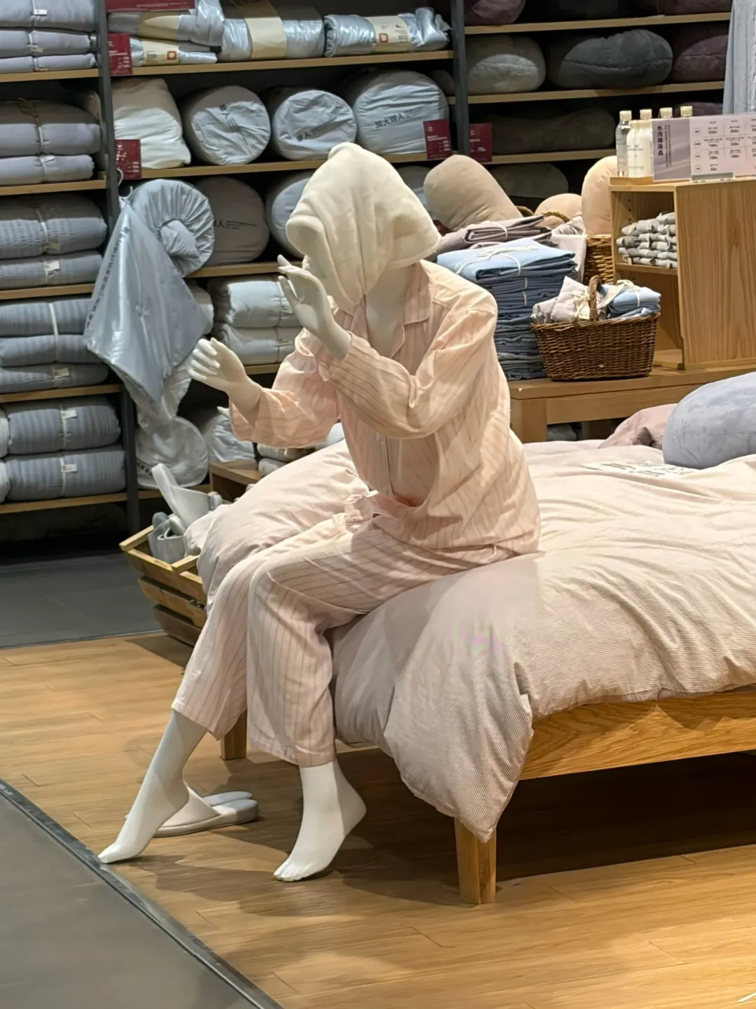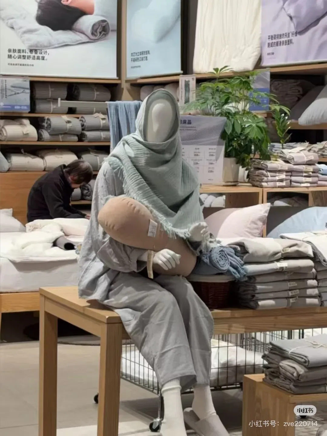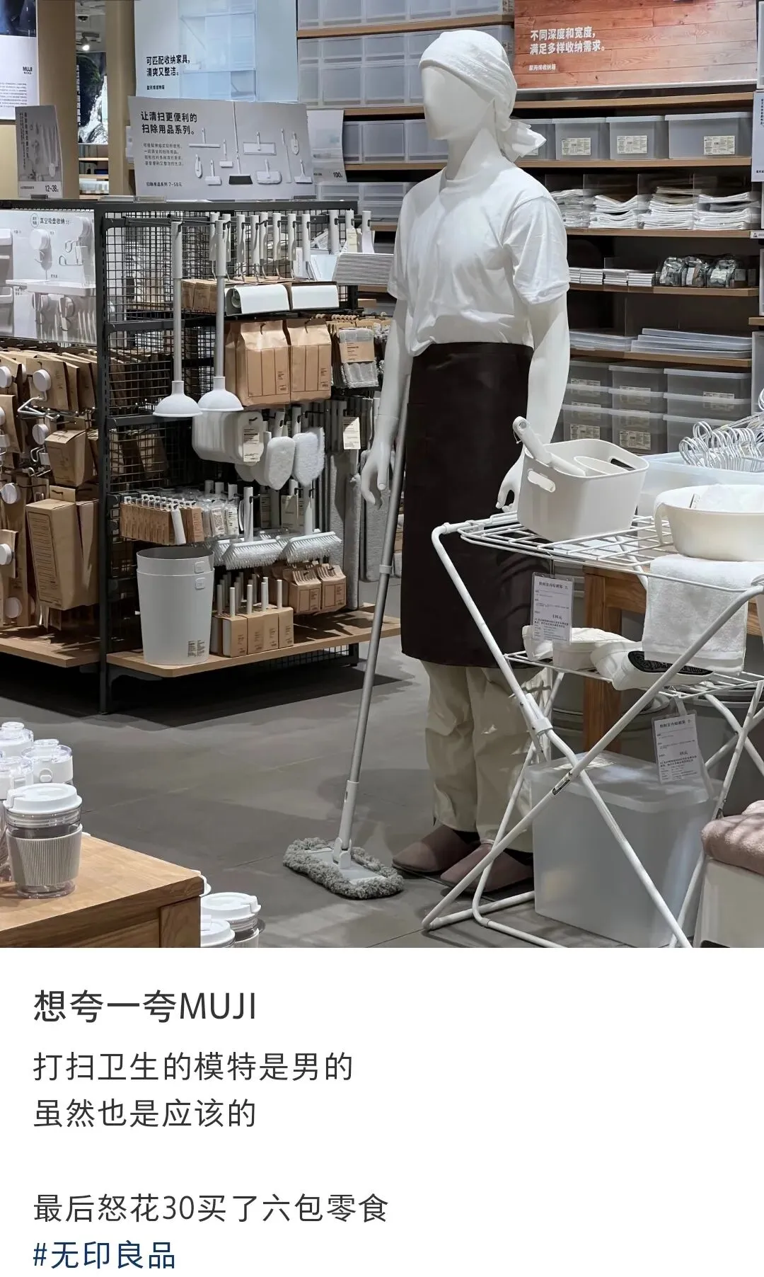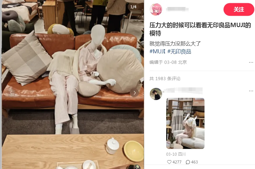 最近,无印良品MUJI的一组店内模特陈列,突然在社交媒体上火了。