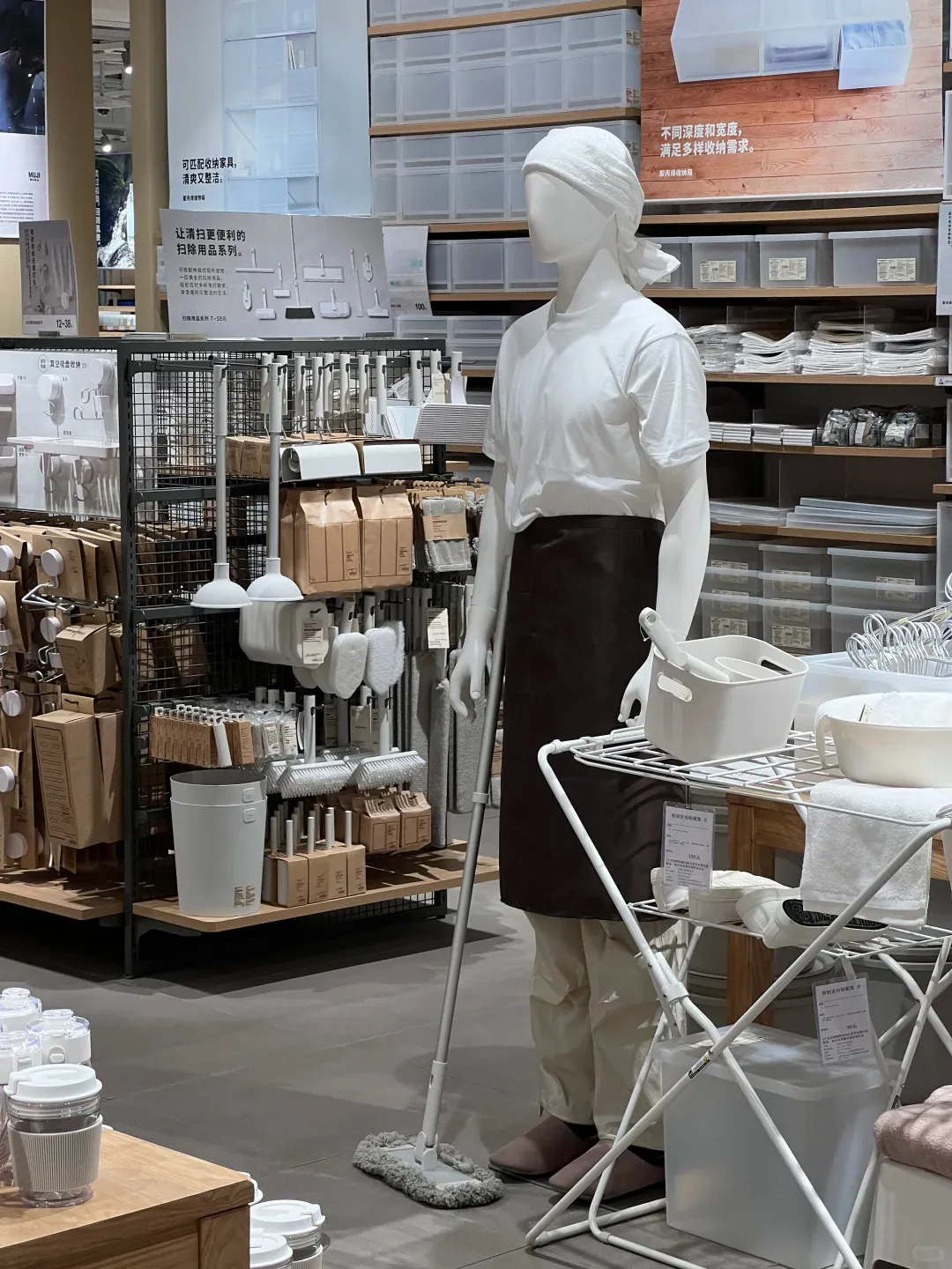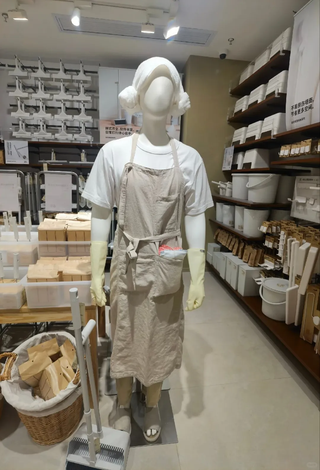 最出圈的,当属无印良品的 “男德模特”:围着围裙、手持拖把、戴着手套做家务,永远有干不完的活,完美演绎 “家庭煮夫” 形象。