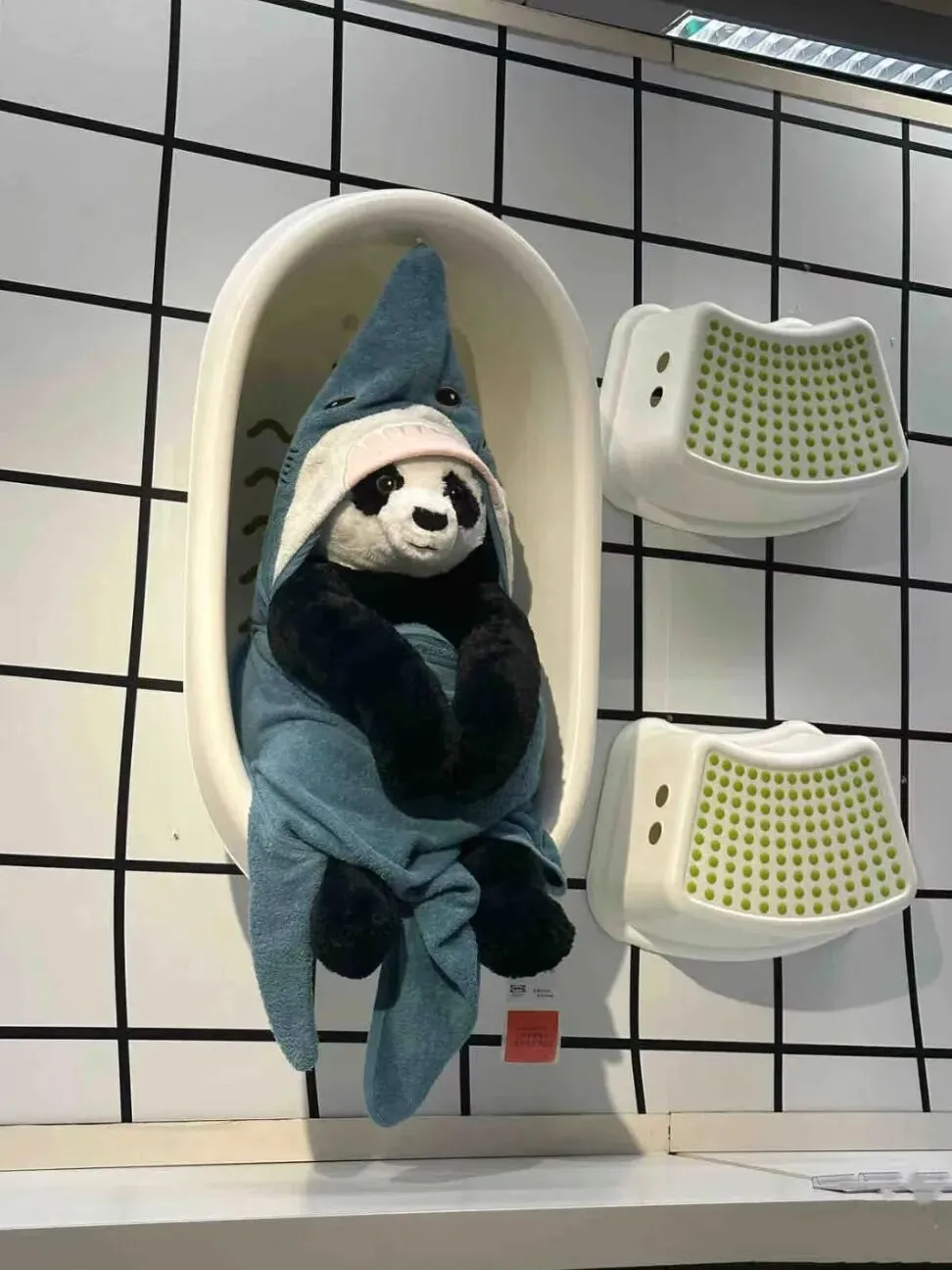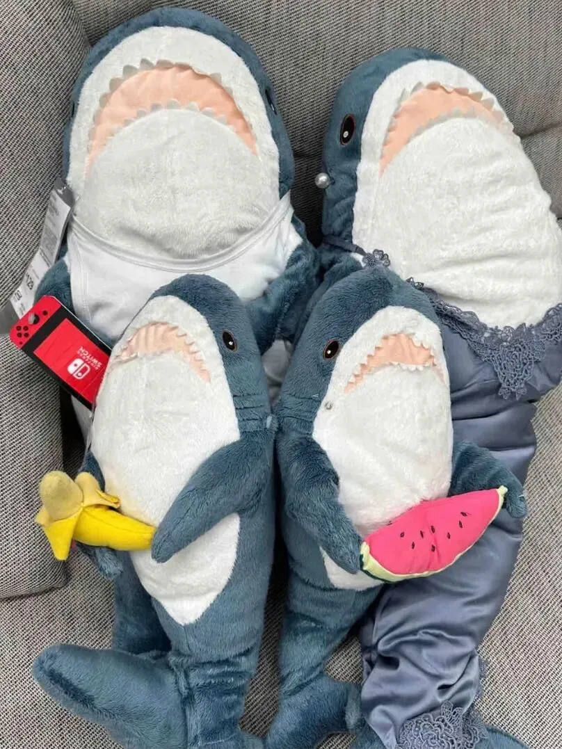 门店里的玩偶,被摆出各种搞笑、治愈、真实的造型:鲨鱼玩偶模仿《呐喊》、红猩猩玩偶陪伴 “被霸凌小猴子”、玩偶们组团 “上班”“摸鱼”“团建”,每一个造型都自带故事感,让年轻人疯狂拍照、玩梗、传播。