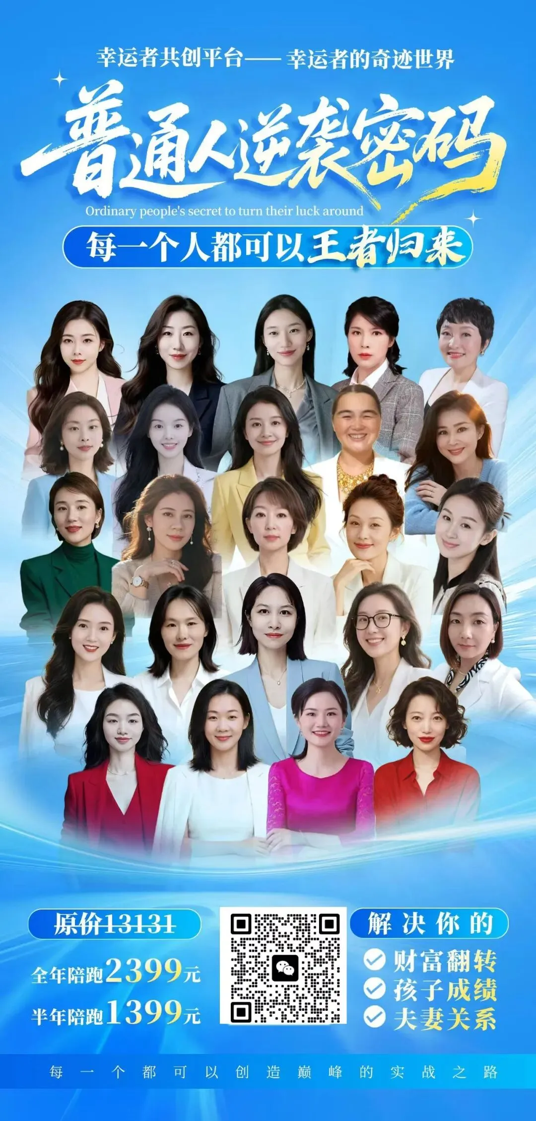 如果你有财富问题、孩子成绩问题、夫妻关系问题,赶快加入普通人逆袭成功陪跑营,创造属于你的人生奇迹!