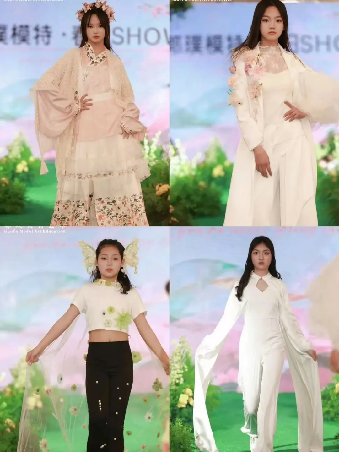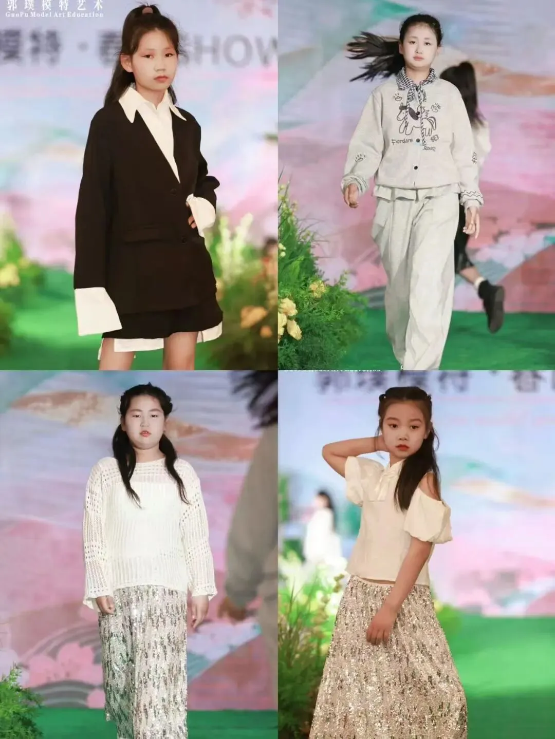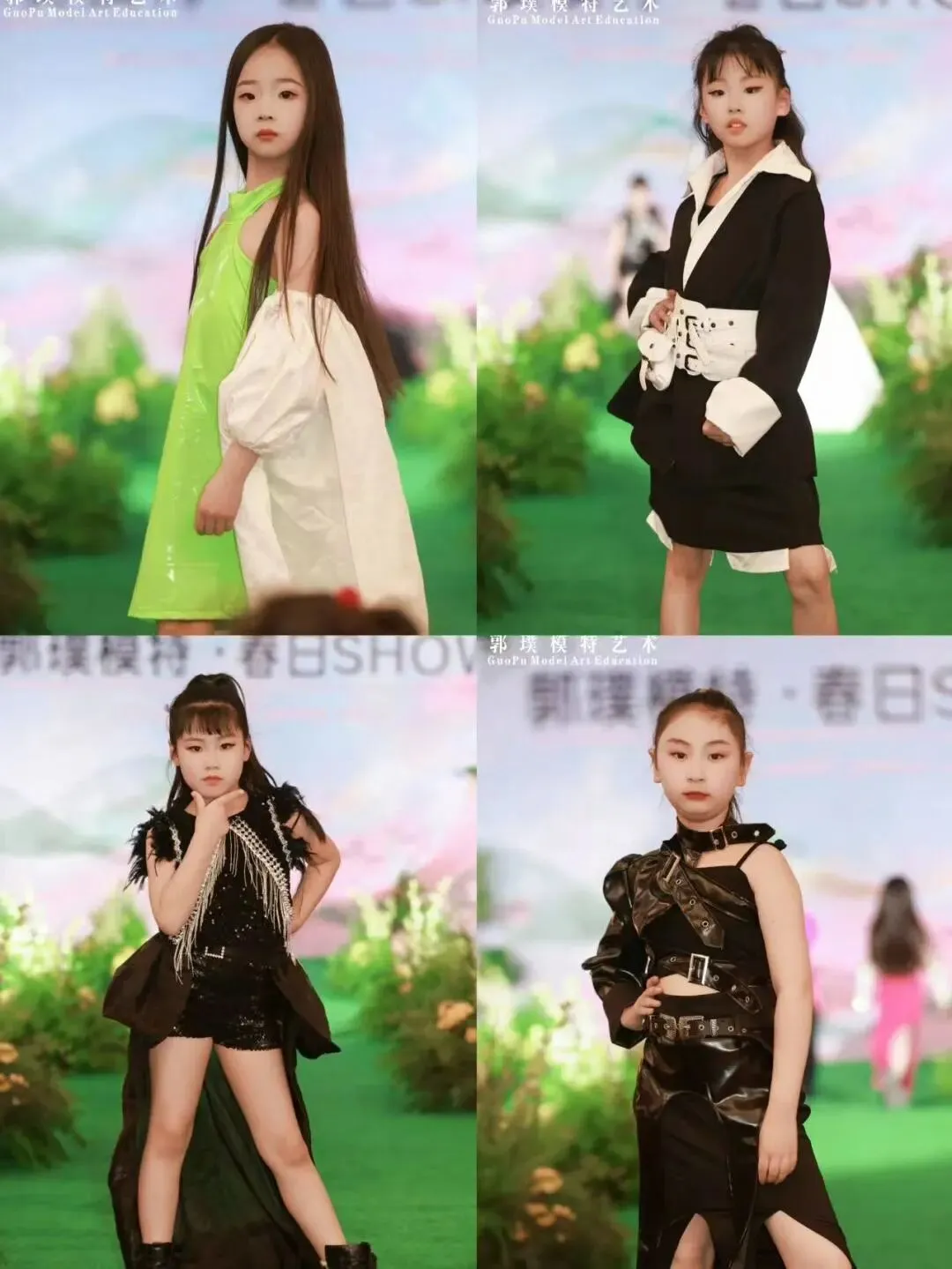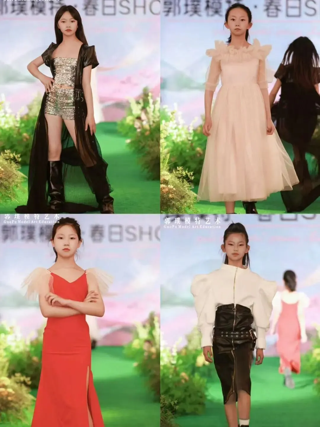 本次秀场覆盖郭璞模特全龄段学员。童模宝贝们天真灵动、青少年艺考学员朝气自信、成人姐姐们优雅大气,每一个年龄段都展现出独有的气质与光芒,也体现出郭璞模特专业、系统、针对性的形体美育教学成果。