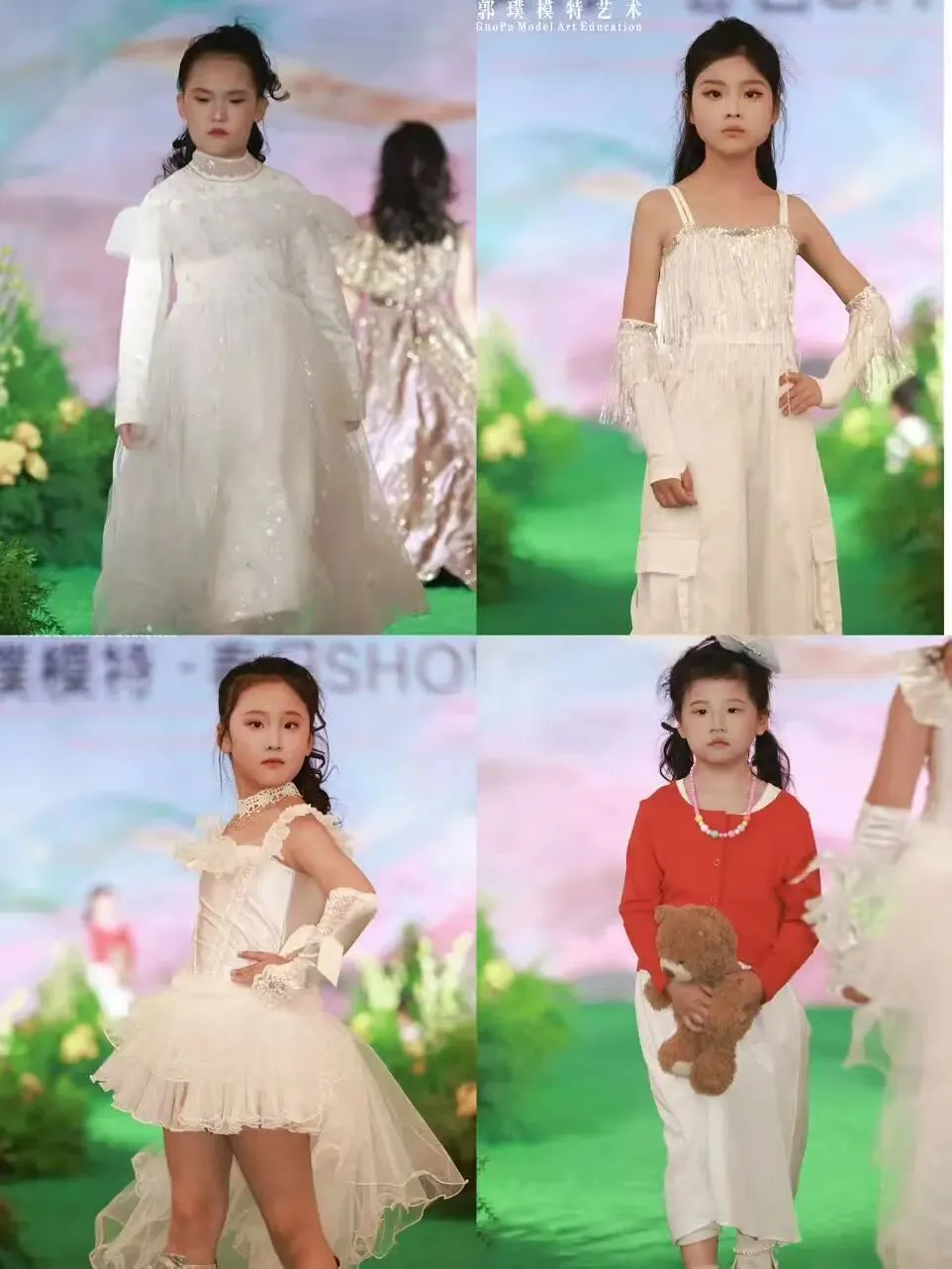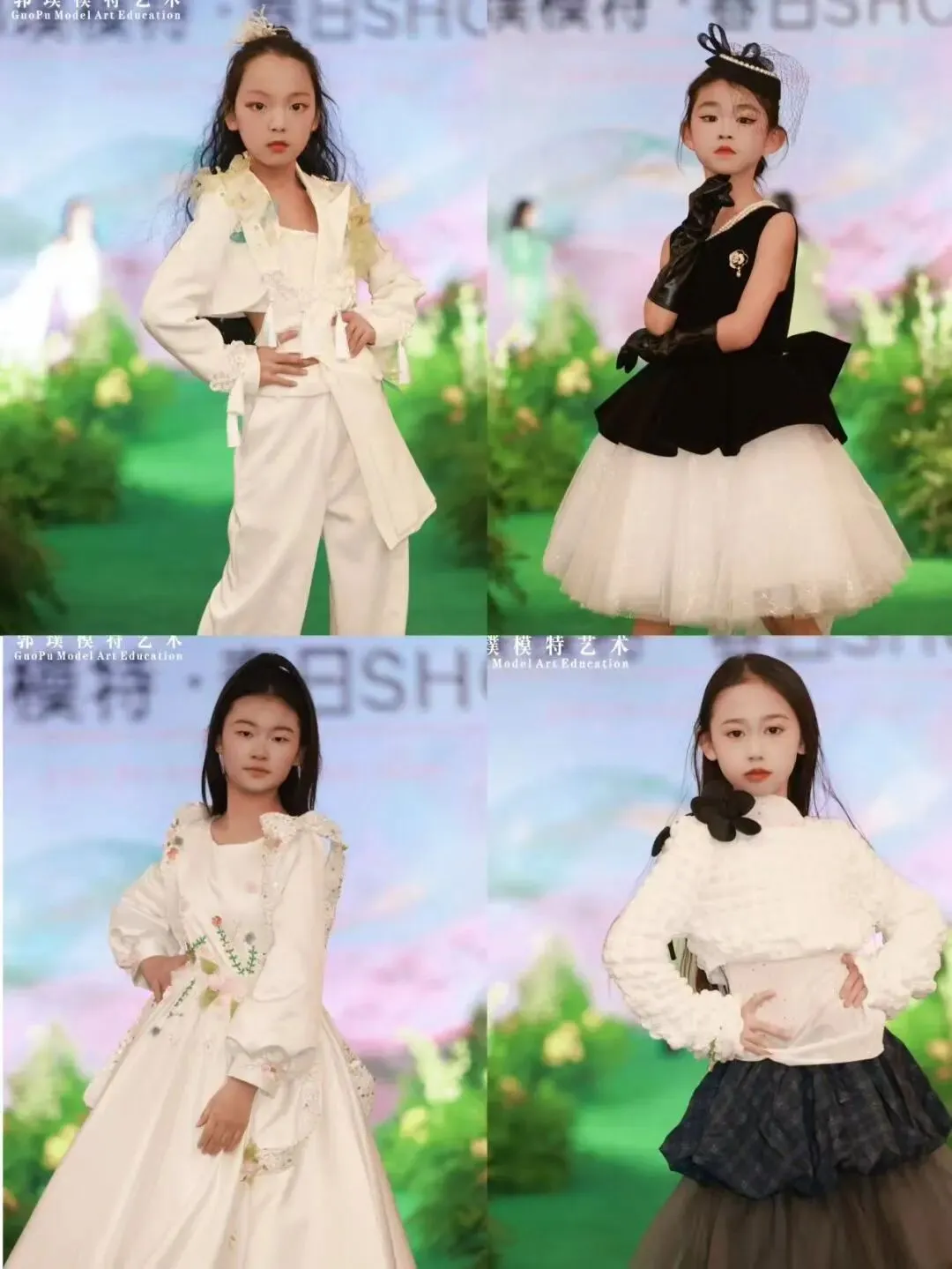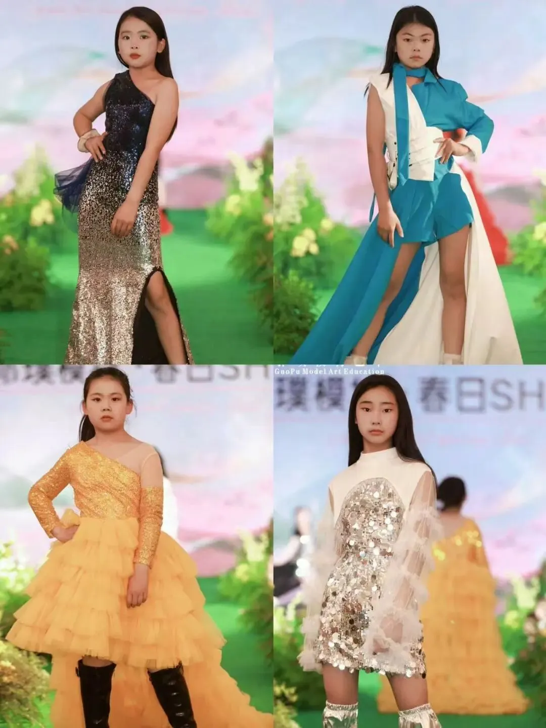本次秀场覆盖郭璞模特全龄段学员。童模宝贝们天真灵动、青少年艺考学员朝气自信、成人姐姐们优雅大气,每一个年龄段都展现出独有的气质与光芒,也体现出郭璞模特专业、系统、针对性的形体美育教学成果。