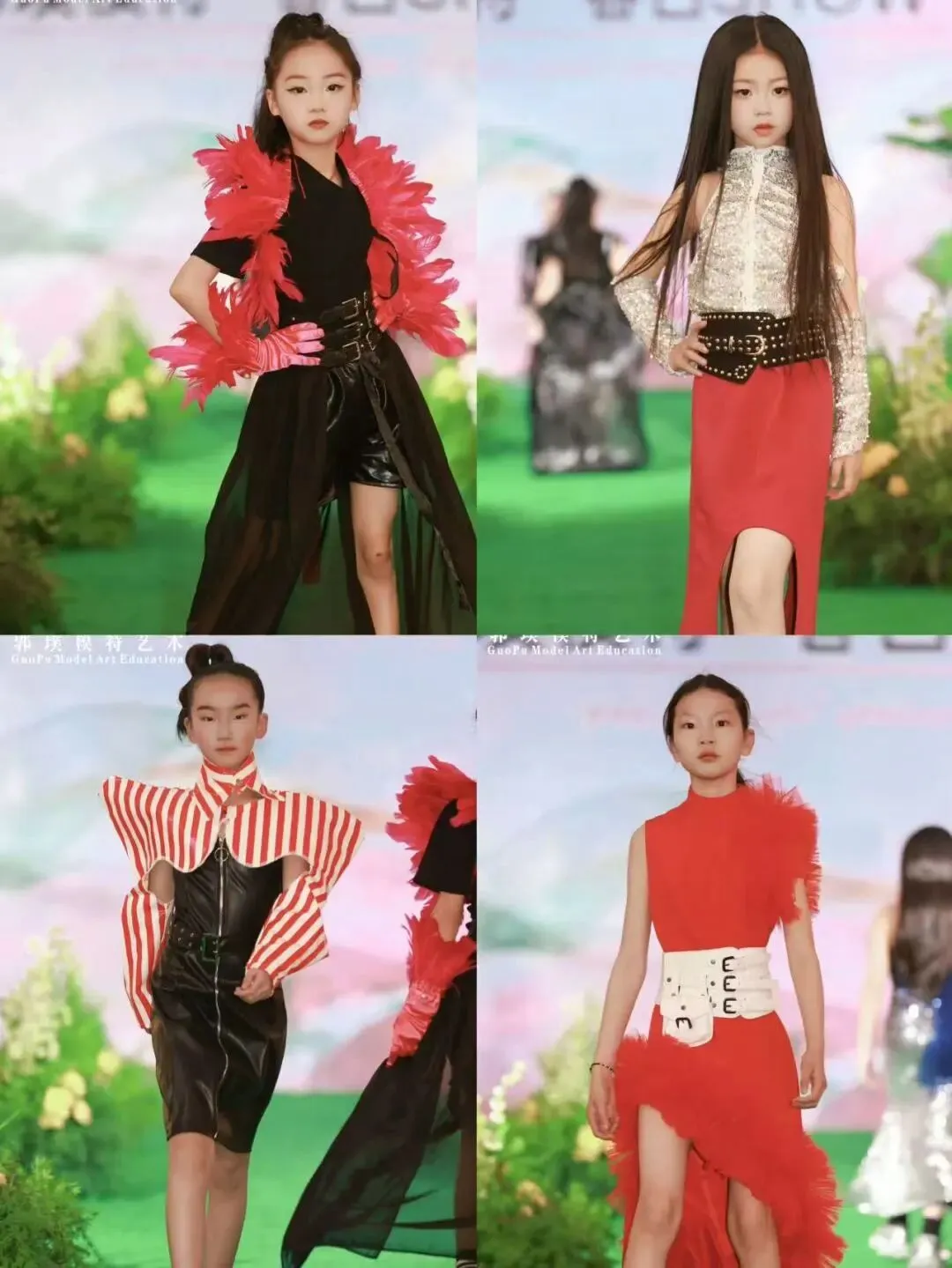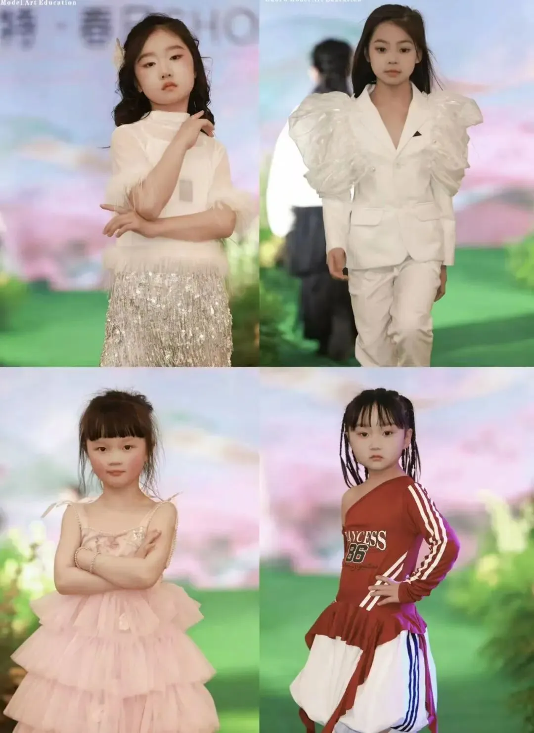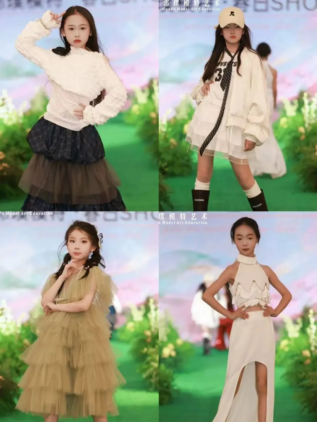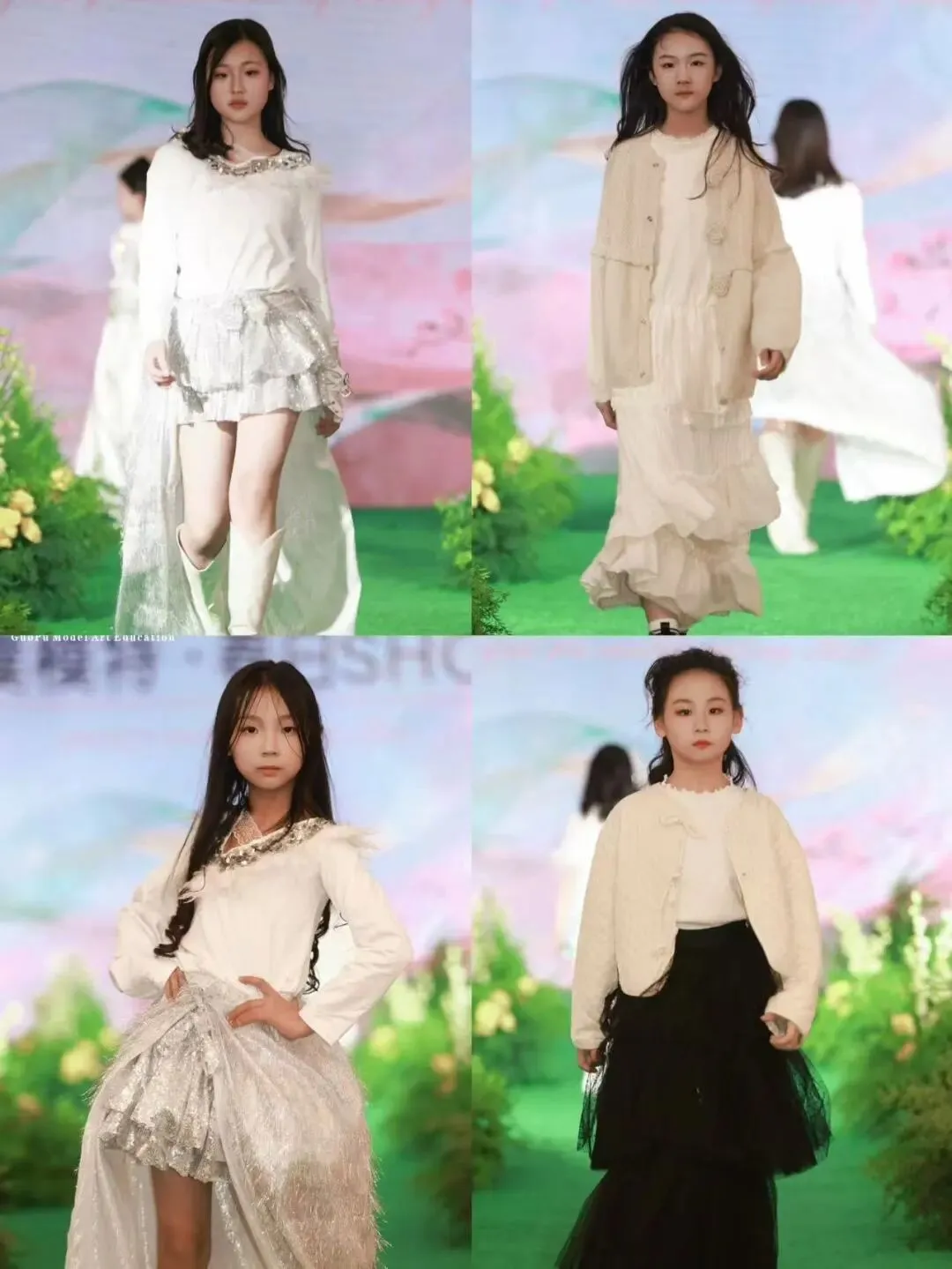 本次秀场覆盖郭璞模特全龄段学员。童模宝贝们天真灵动、青少年艺考学员朝气自信、成人姐姐们优雅大气,每一个年龄段都展现出独有的气质与光芒,也体现出郭璞模特专业、系统、针对性的形体美育教学成果。