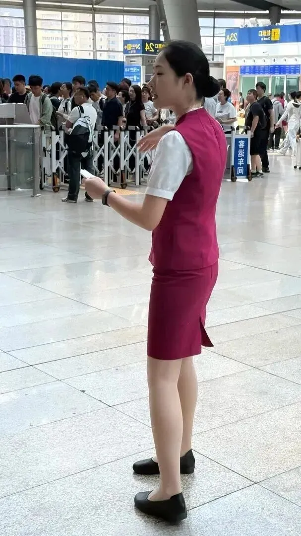 工作时的样子帅极了。手持对讲机,眼里带着深深的、坚决的男乘务员穿着酒红色的制服走了出来。专业范儿被看到的人怎么不敬佩呢?