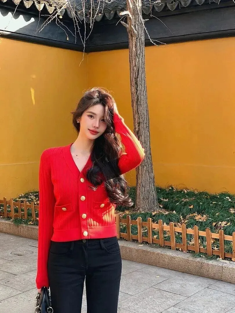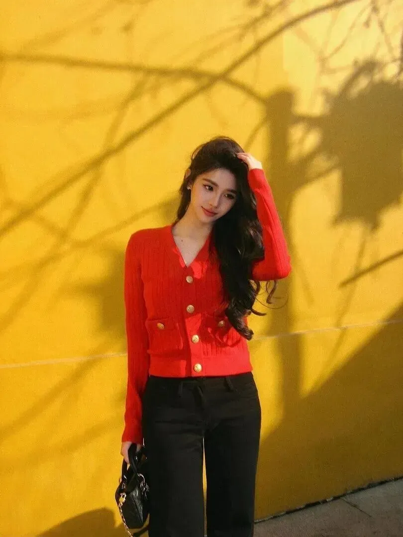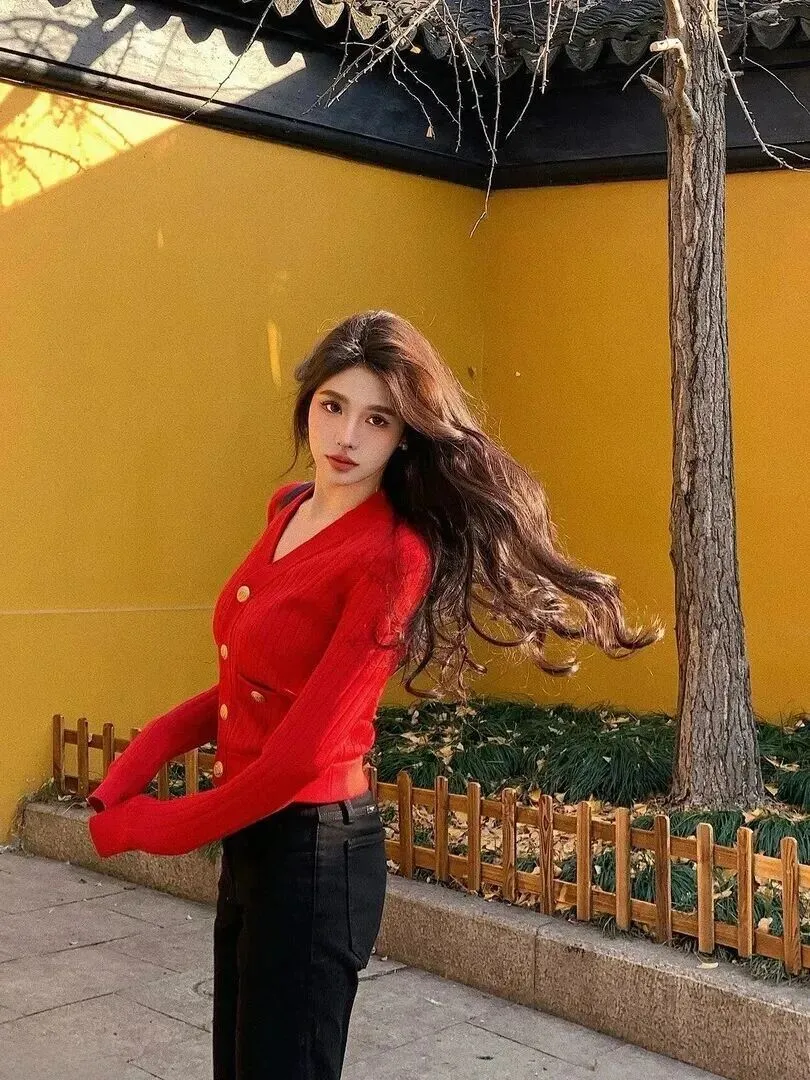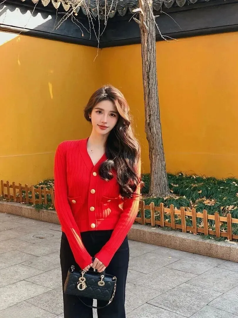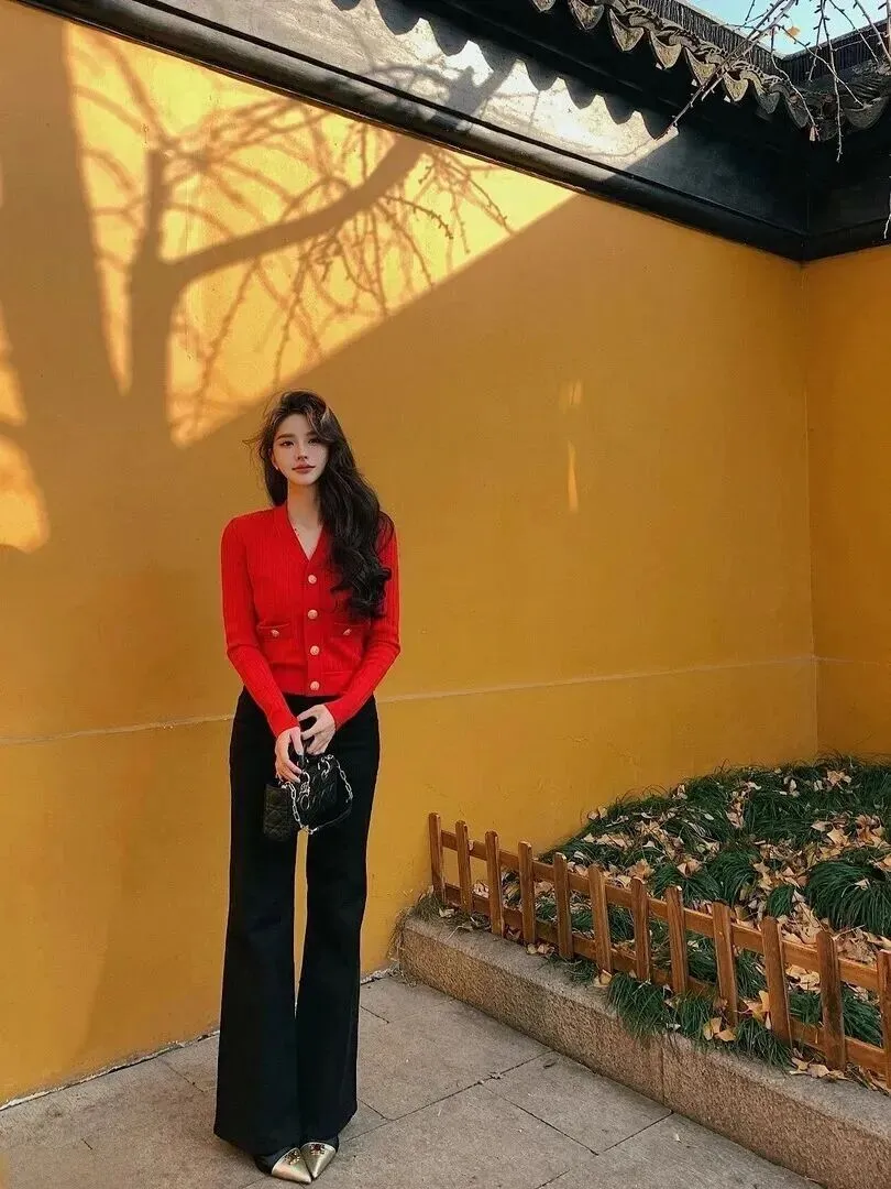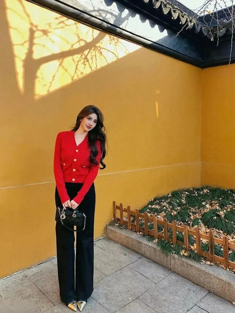 马上将迎来各类节日扎堆之时,穿上这一套出门绝对会非常醒目。红色喜庆,黑色稳重,两者结合起来就是高级感。姐妹们赶紧出去闪耀,别等男人抢着来!记住自信是最好的配饰,穿的开心最重要。